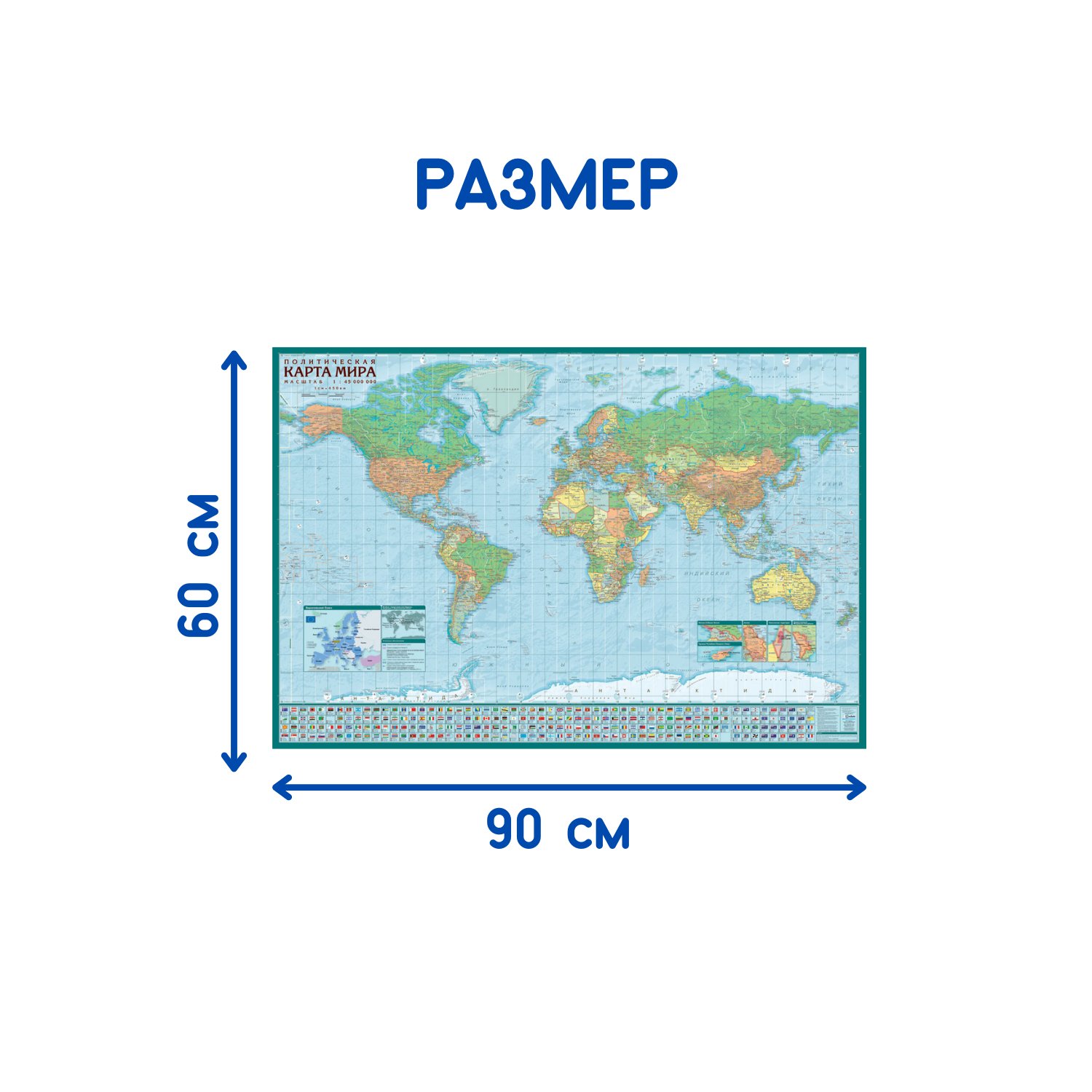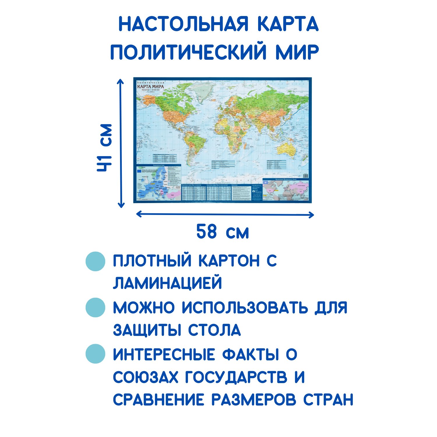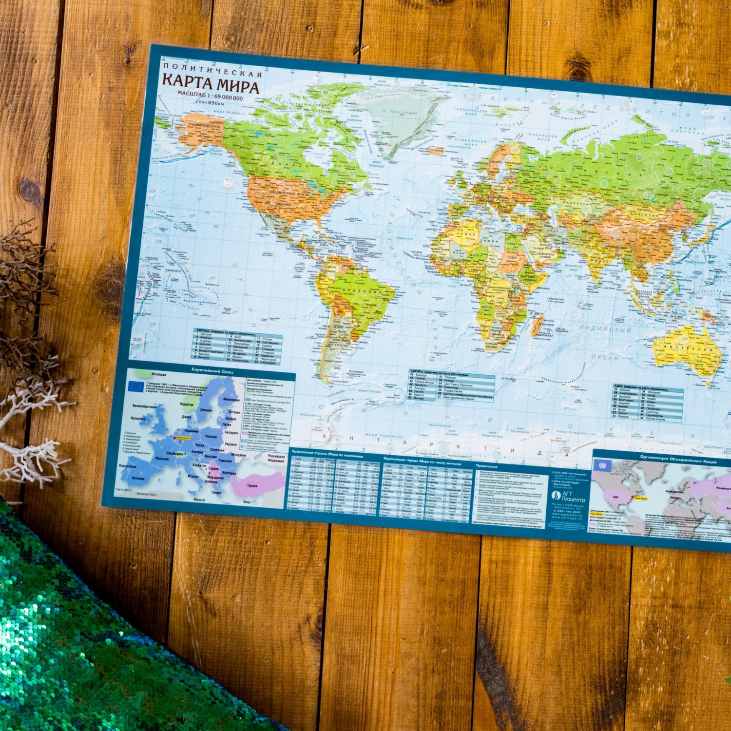Детская карта АГТ Геоцентр Политический мир и Спутниковая карта мира настольная GT231109/1