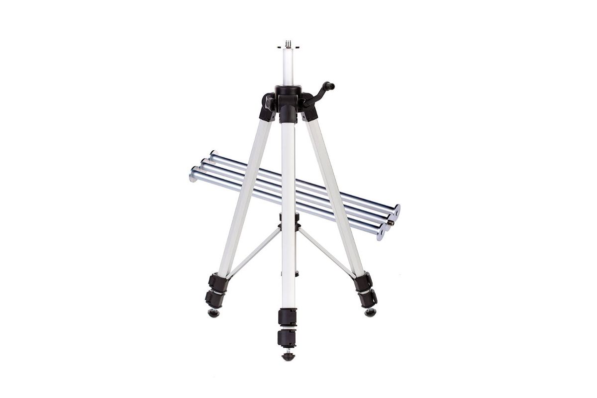 Устойчивая тренога не даст конструкции опрокинуться. Высота ножек настраивается и фиксируется с помощью винта.