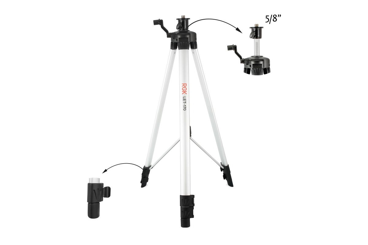 Элевационный (с подъемной площадкой) штатив служит для установки лазерных уровней, построителей плоскостей и ротационных нивелиров на отметках до 172 см. Его регулируемая колонка позволяет перемещать лазерный прибор вверх или вниз для точного наведения или перемещения горизонтальной лазерной плоскости.