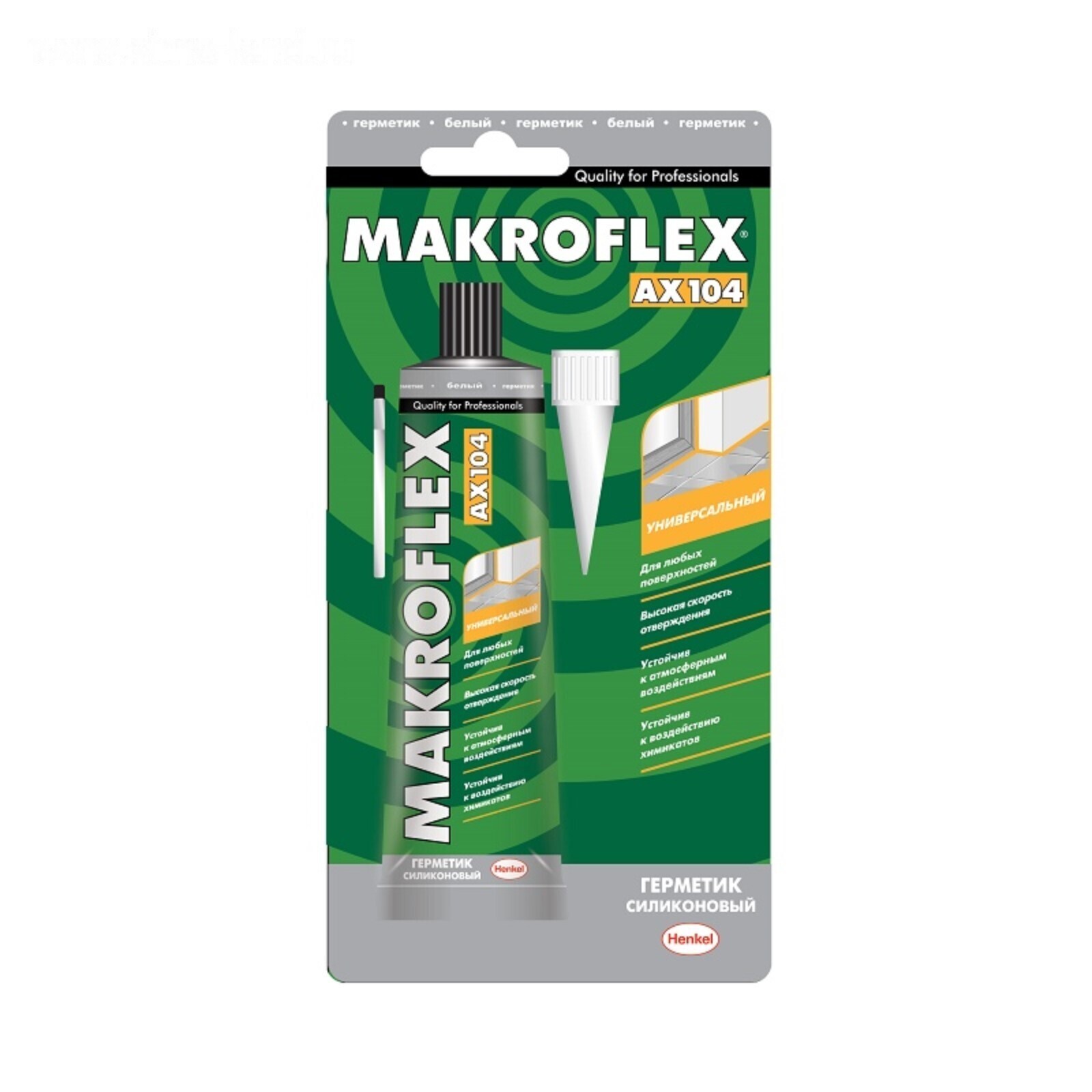 Герметик силиконовый Makroflex AX104 применяется для внутренних и наружных работ везде, где необходима устойчивость к различным атмосферным и химическим воздействиям. Вещество обладает хорошей адгезией (прилипанием) к эмалированным и окрашенным поверхностям, стеклу, керамике, дереву, металлам.