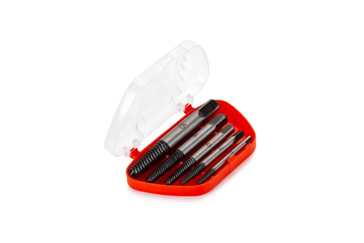 Набор из 5 экстракторов изготовлен из хром-молибденовой стали 35CrMo, поставляется в удобном кейсе для хранения.