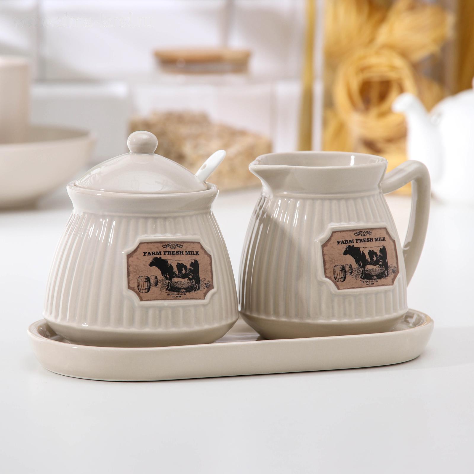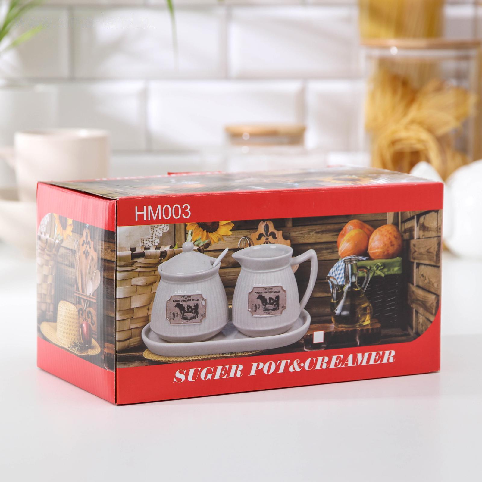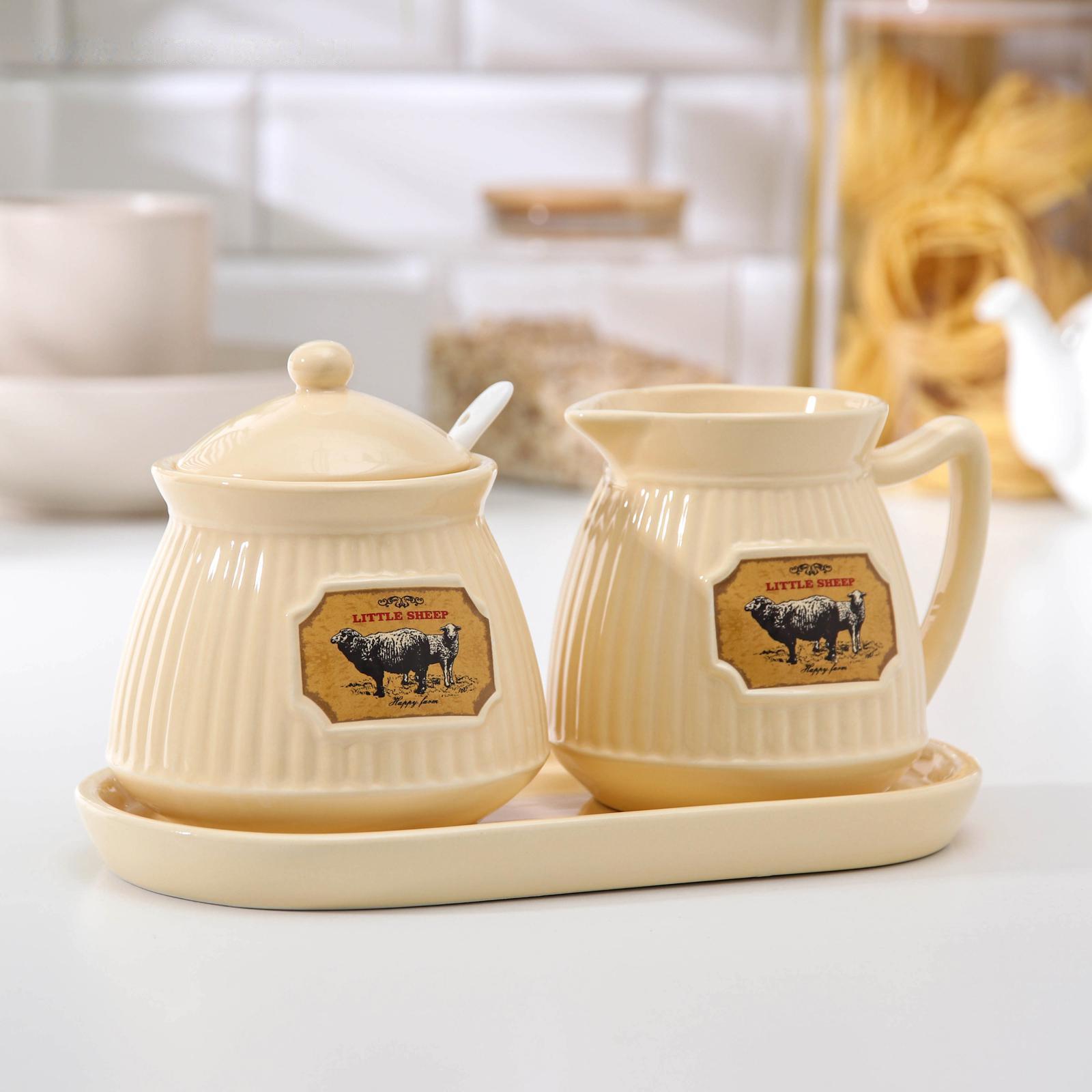 Набор сервировочный «Ранчо», 3 предмета: молочник 350 мл, сахарница 350 мл, ложка, МИКС