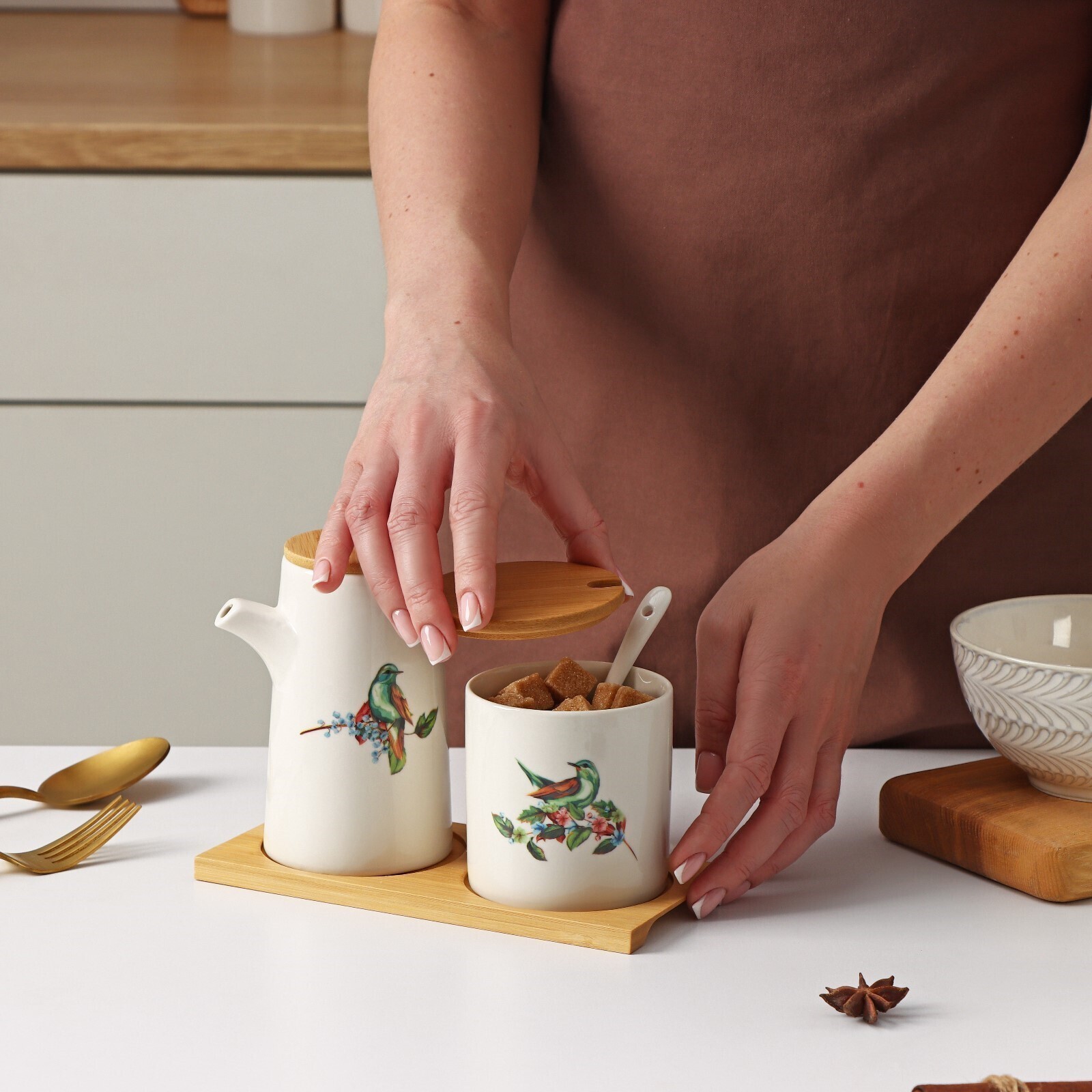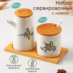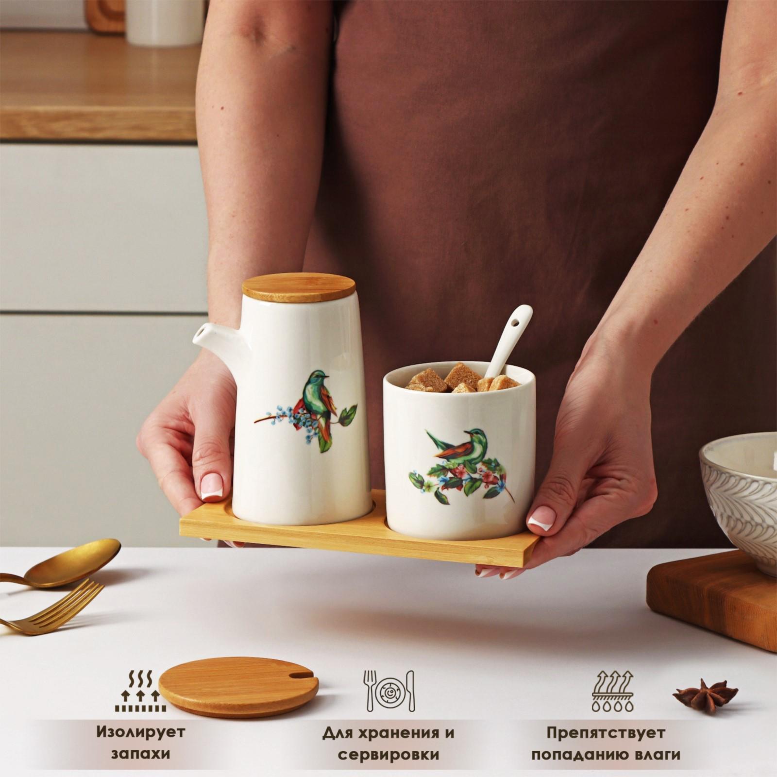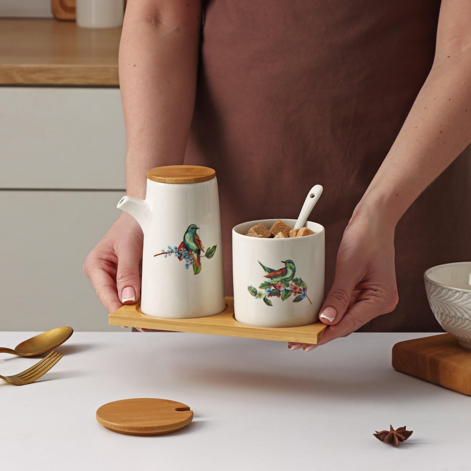 Набор сервировочный Доляна «Эстет. Колибри», 2 предмета: молочник 280 мл, сахарница с ложкой 240 мл