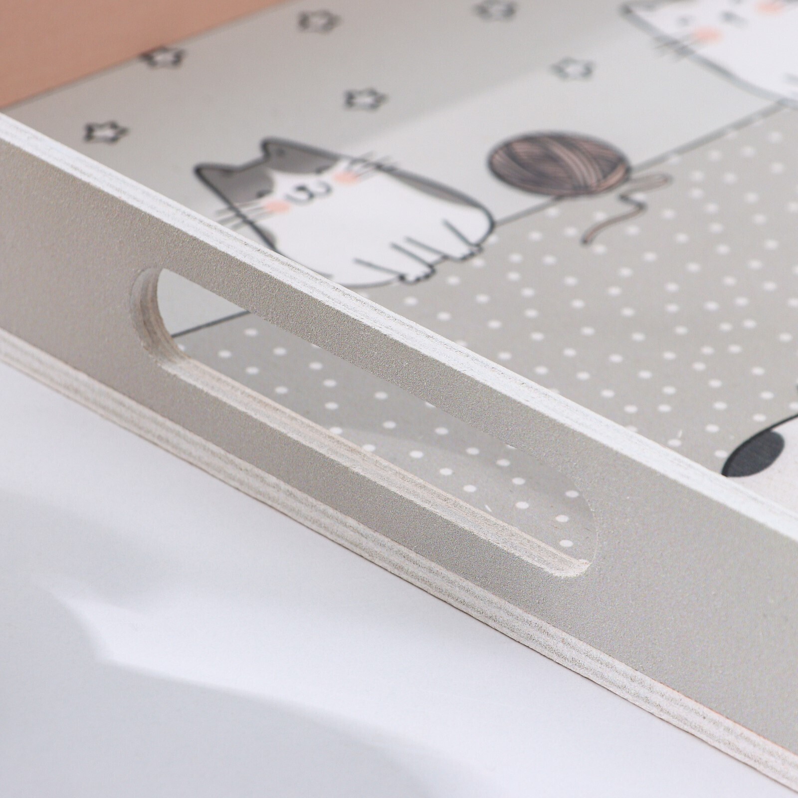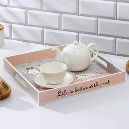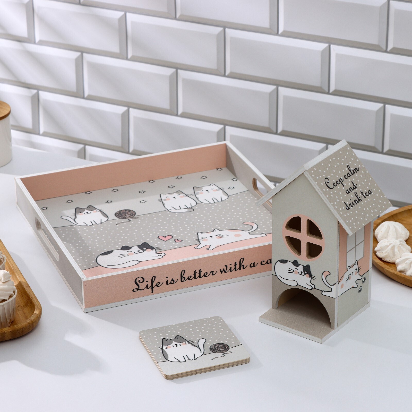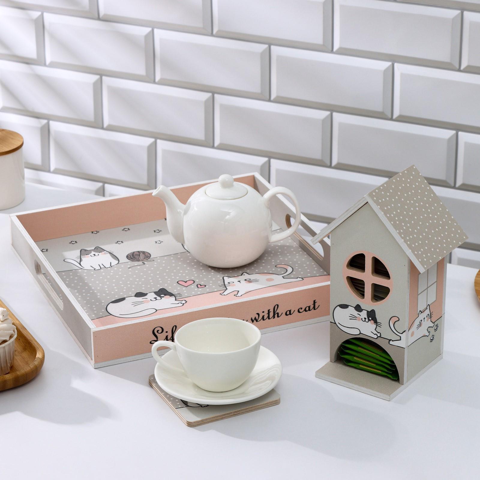 Набор посуды Доляна «Котики», поднос 32×32×4,5 см, чайный домик, подставка под кружку в подарок