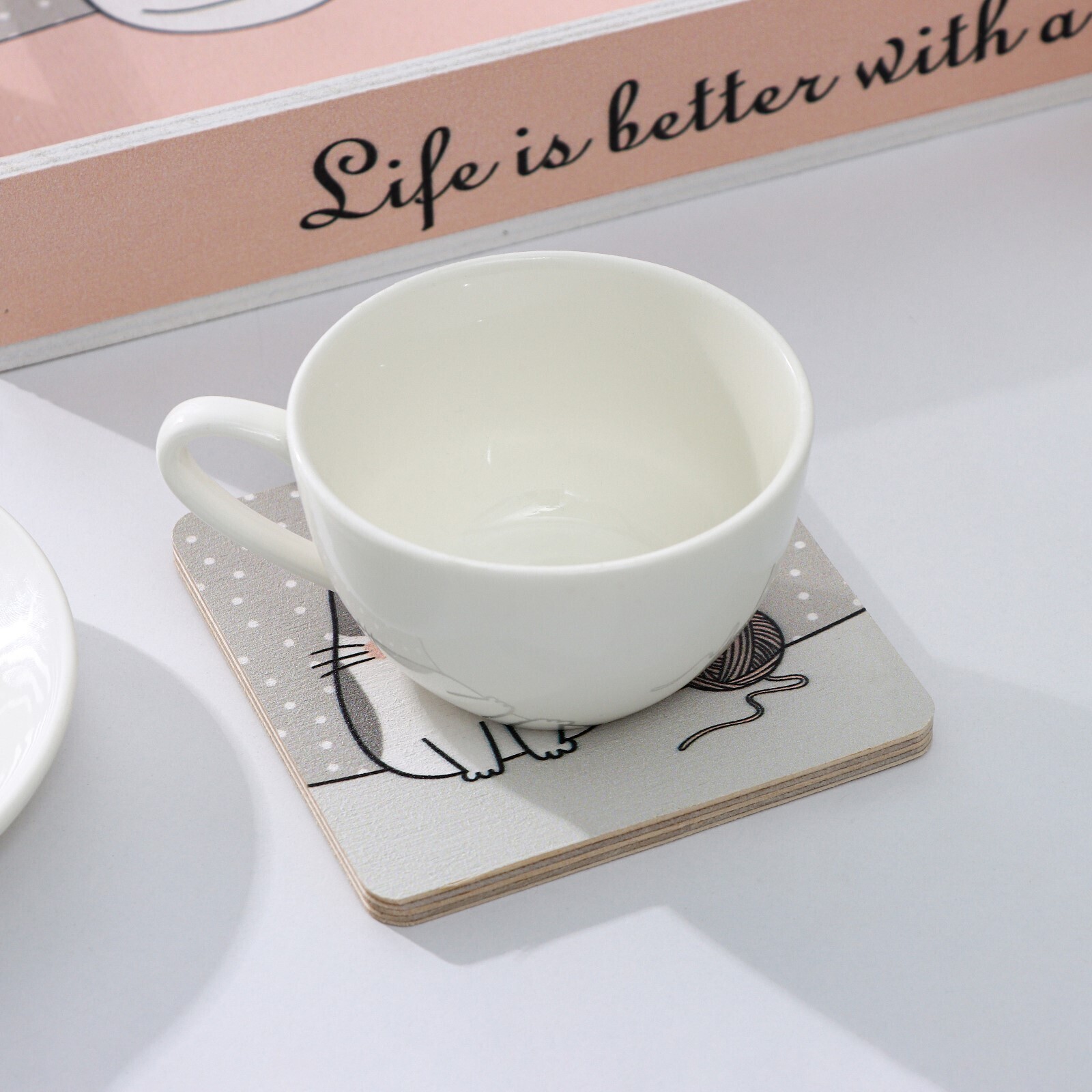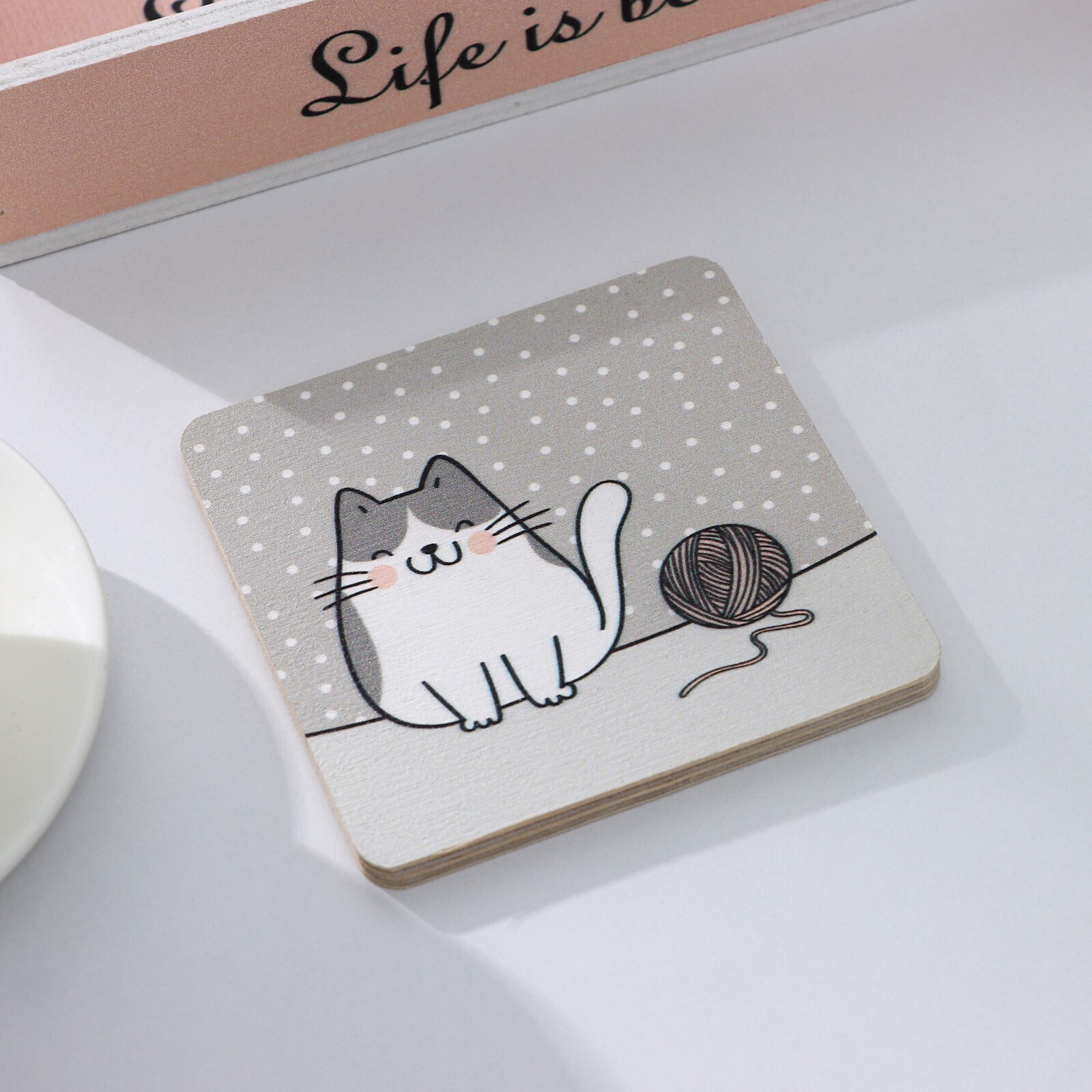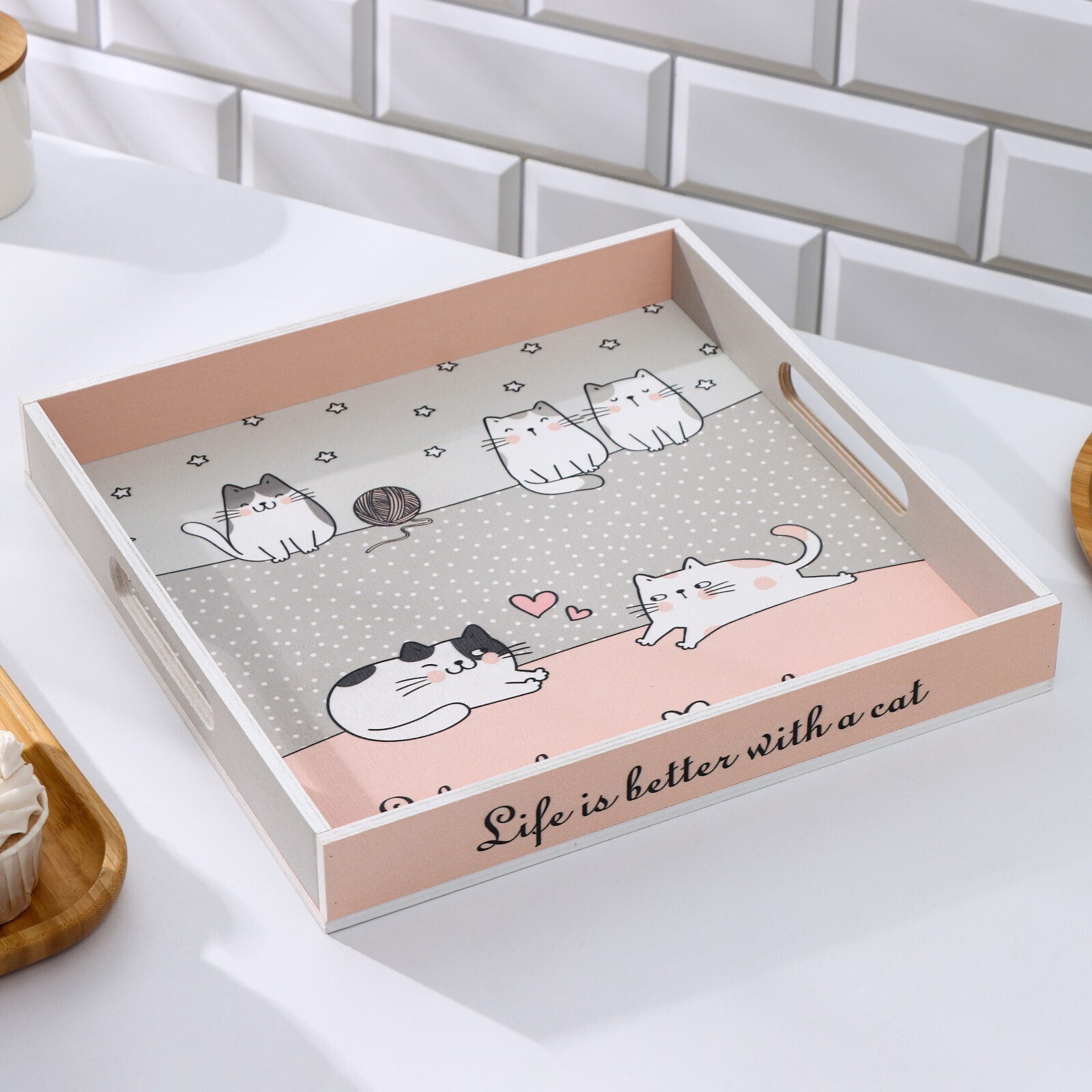 Набор посуды Доляна «Котики», поднос 32×32×4,5 см, чайный домик, подставка под кружку в подарок