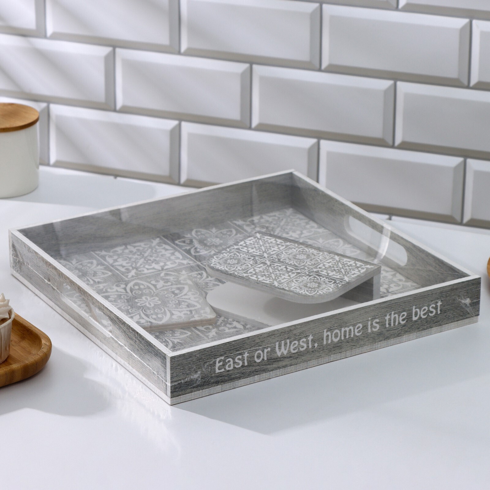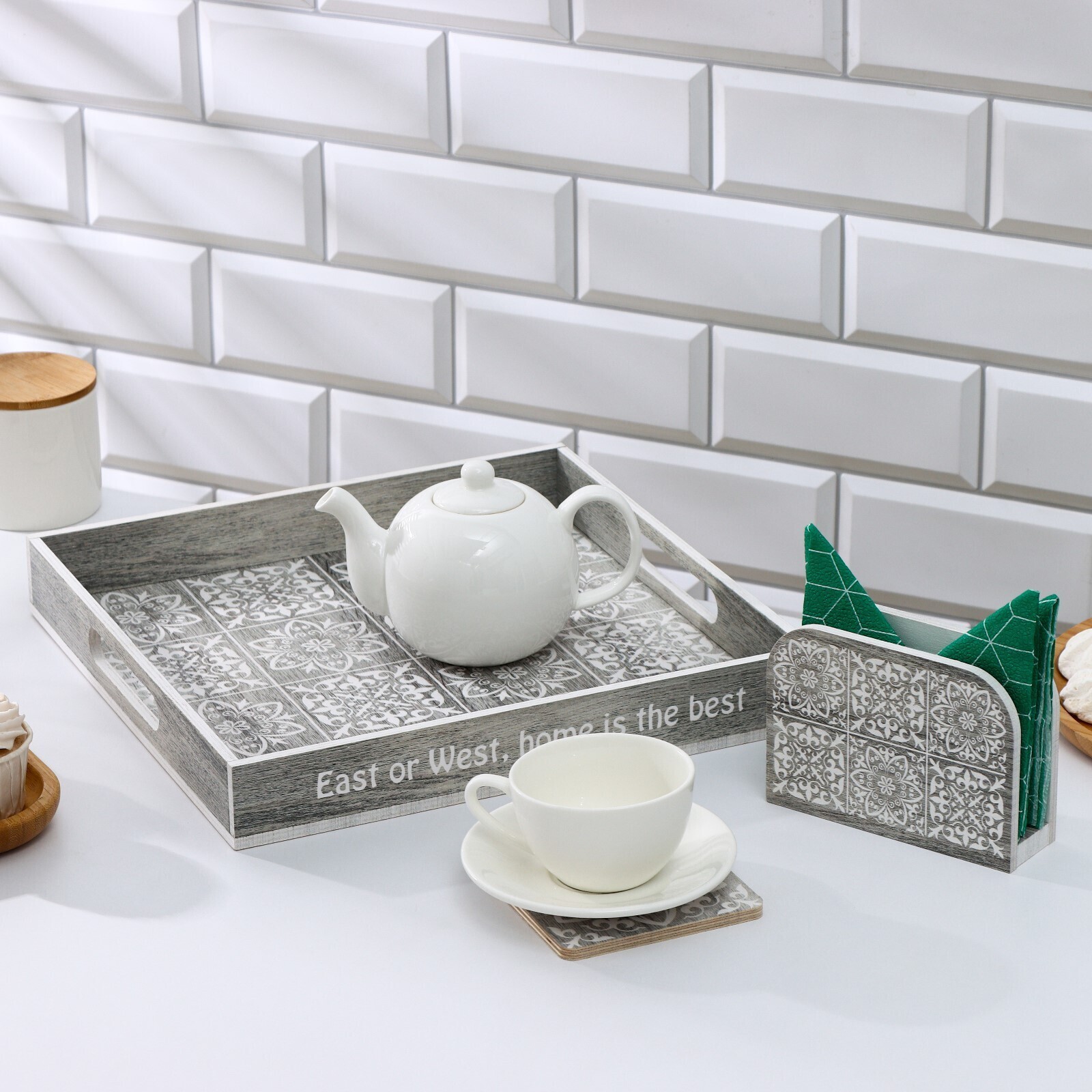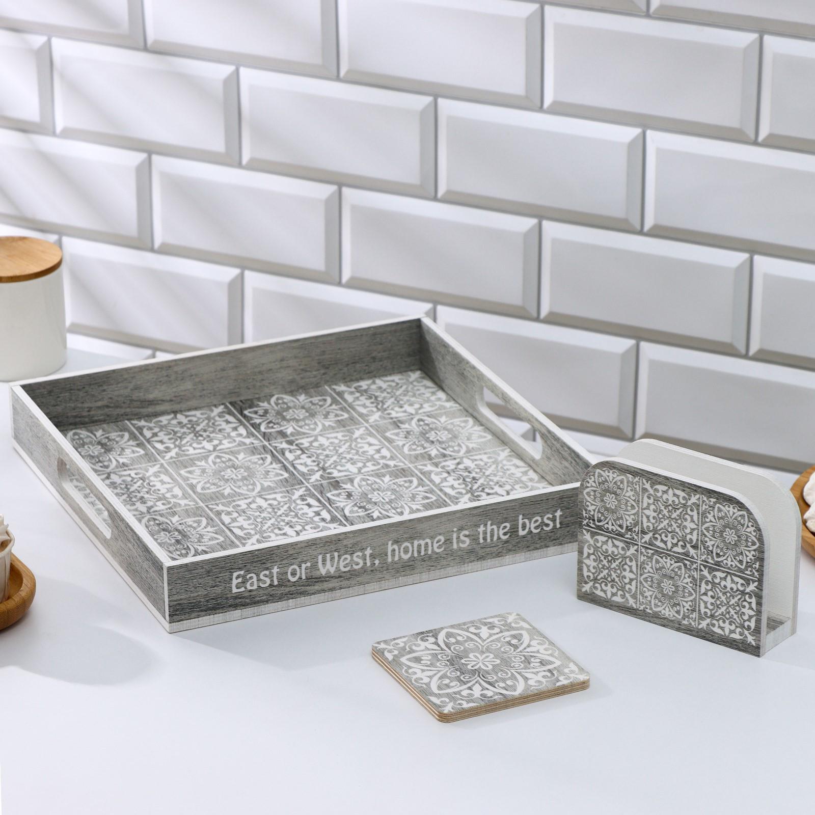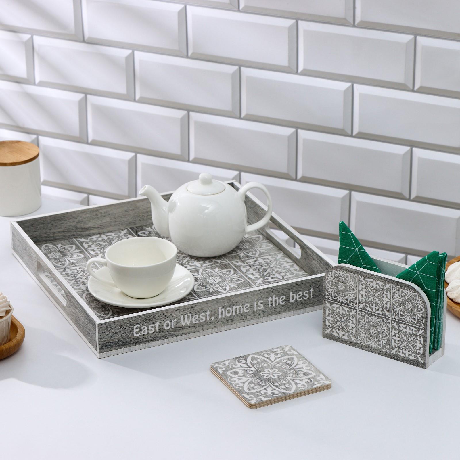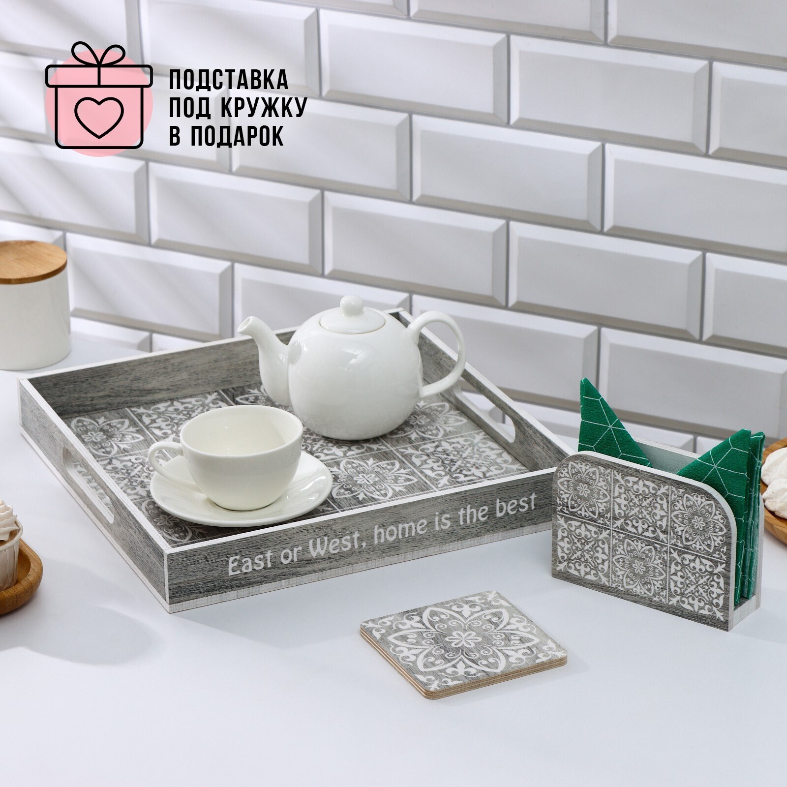 Набор посуды Доляна, поднос 32×32×4,5 см, салфетница 10×14 см, подставка под кружку в подарок