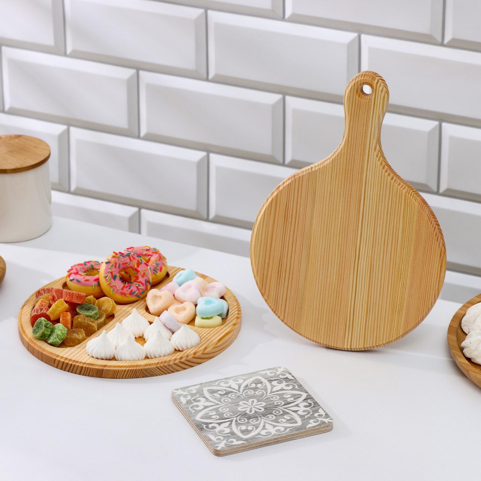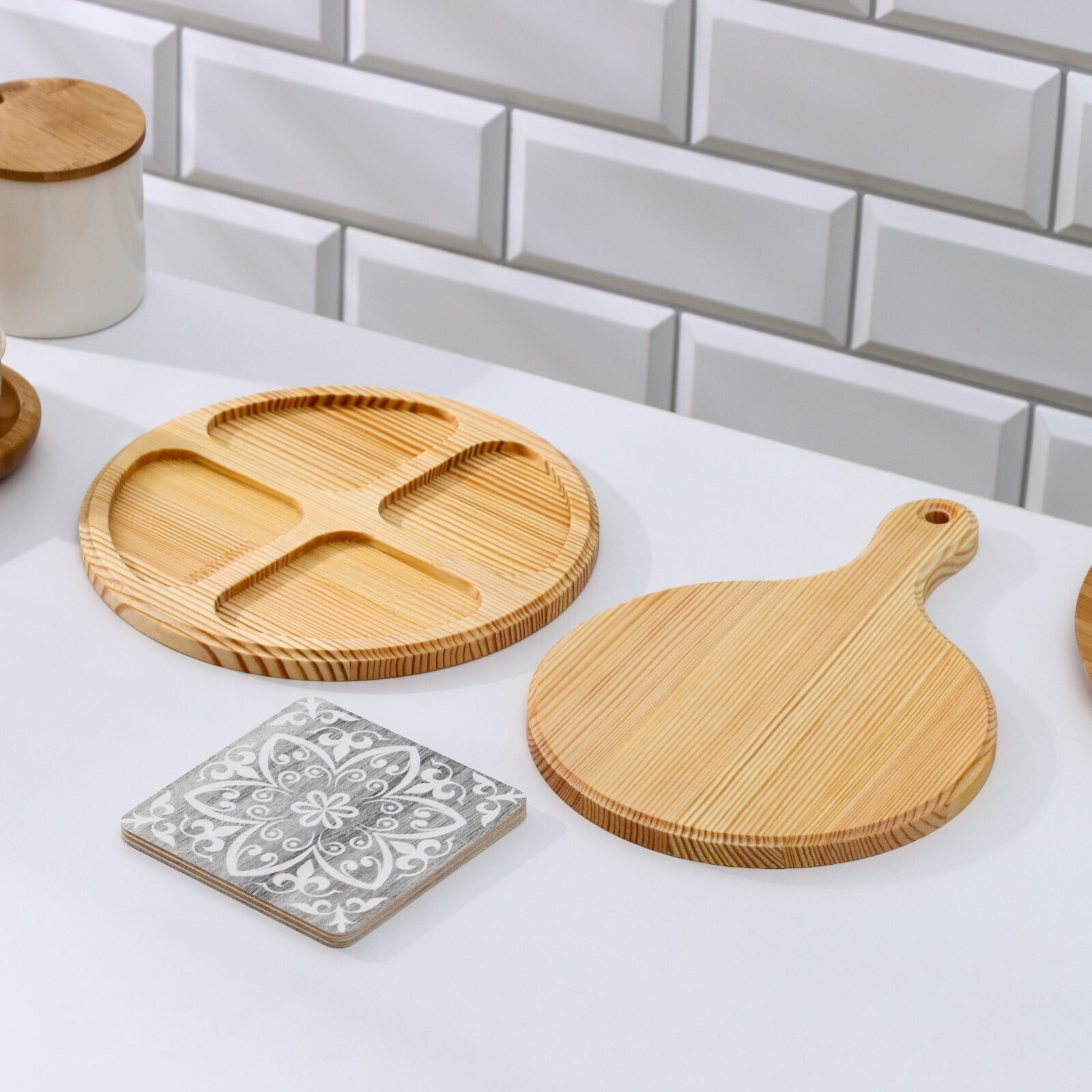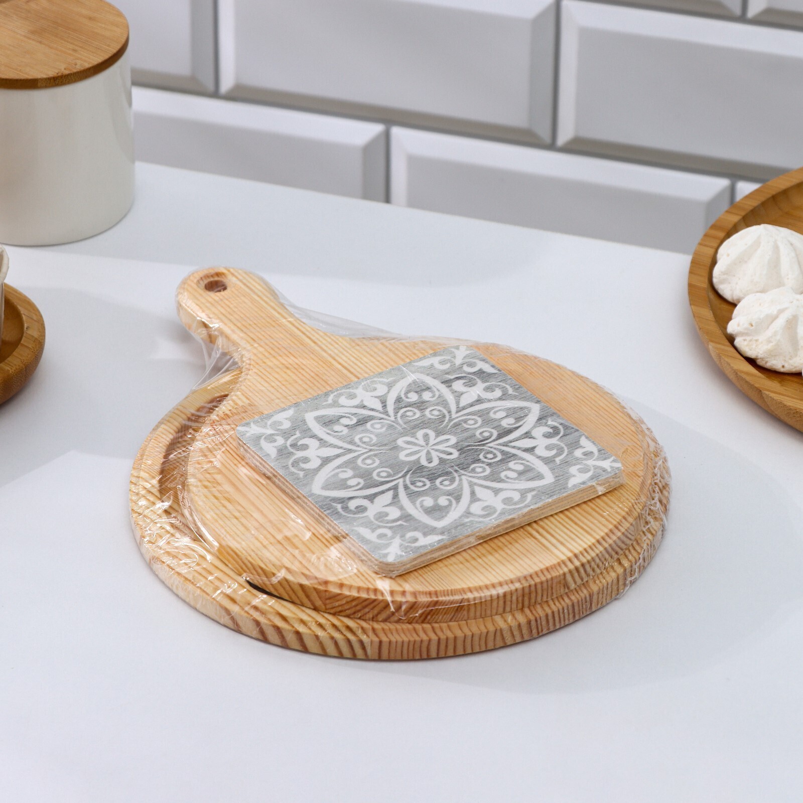 Набор посуды Доляна, менажница d=20 см, разделочная доска 25×17×1,2, подставка под кружку в подарок