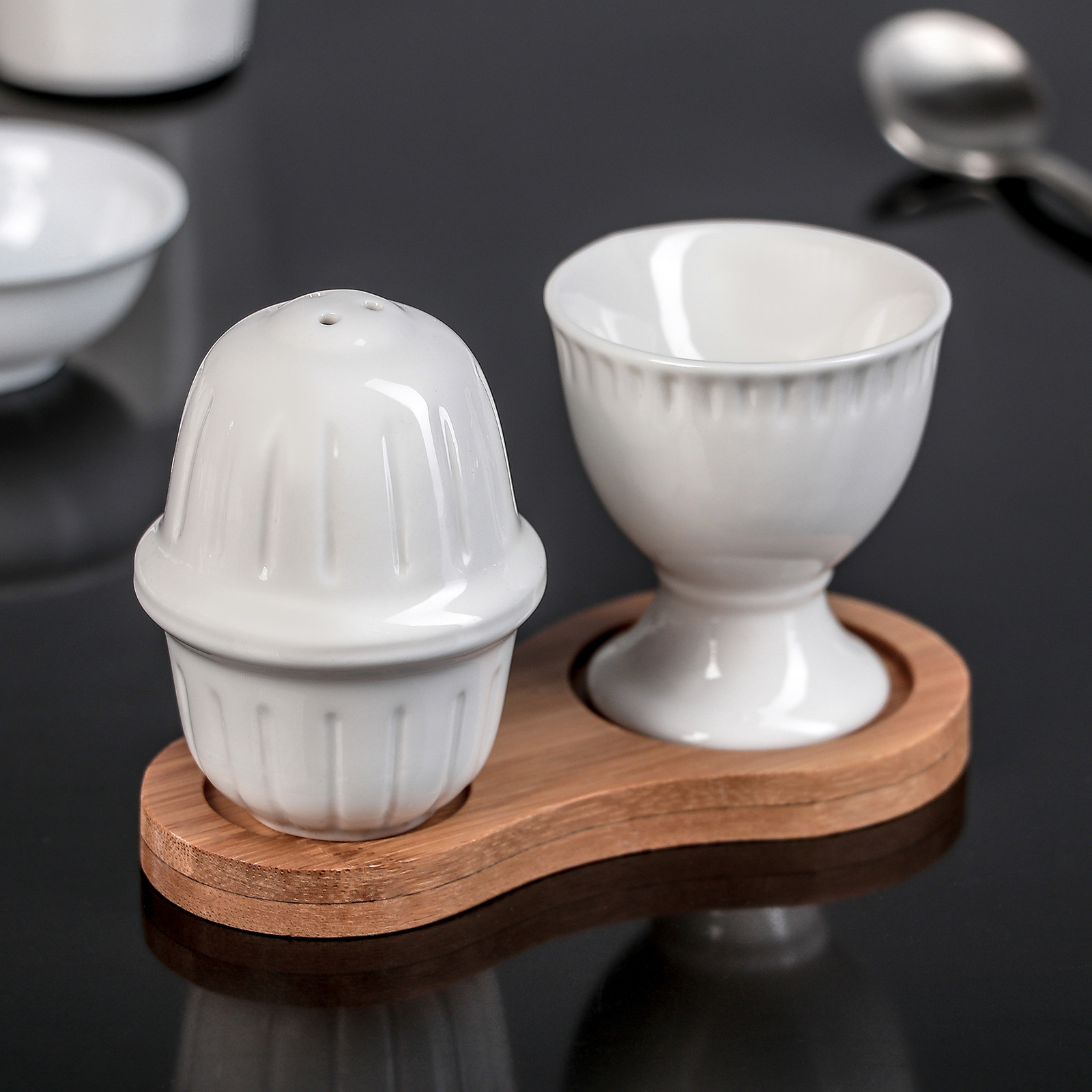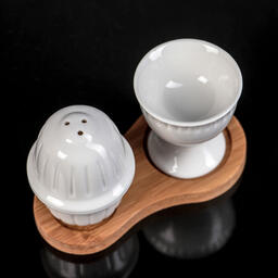 Набор сервировочный Доляна «Эстет», 2 предмета: подставка для яйца, солонка, на деревянной подставке