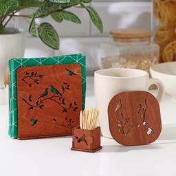 Набор для сервировки "Сказка",салфетница, подставка под горячее и подставка по зубочистки