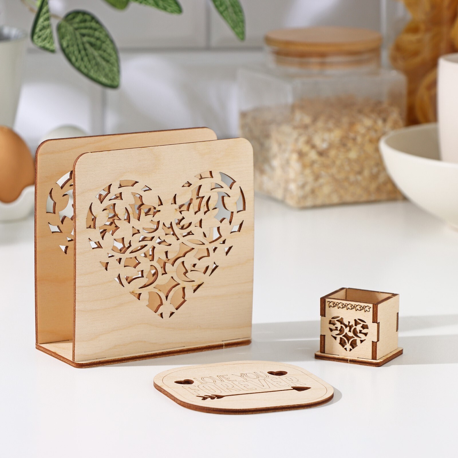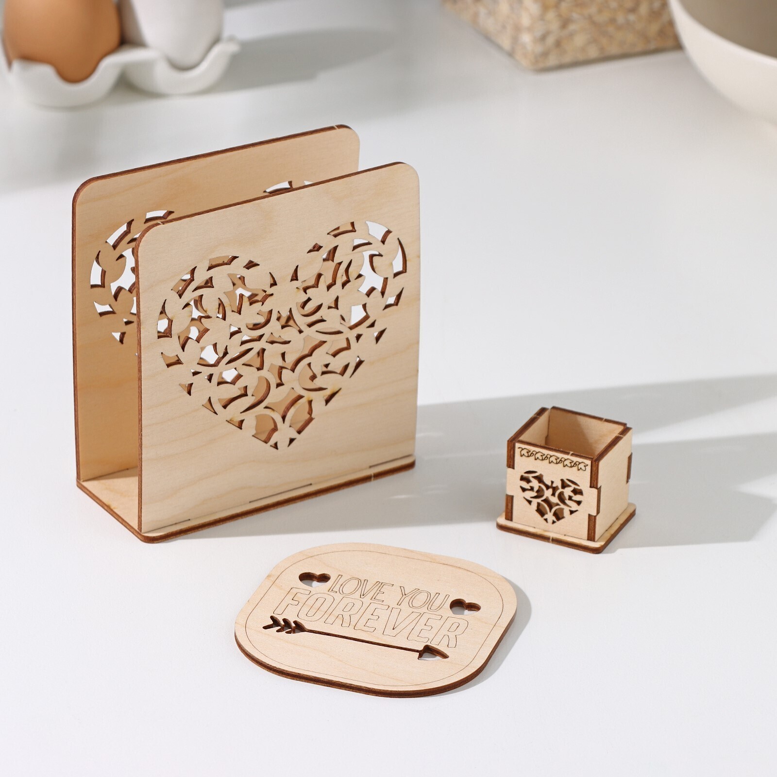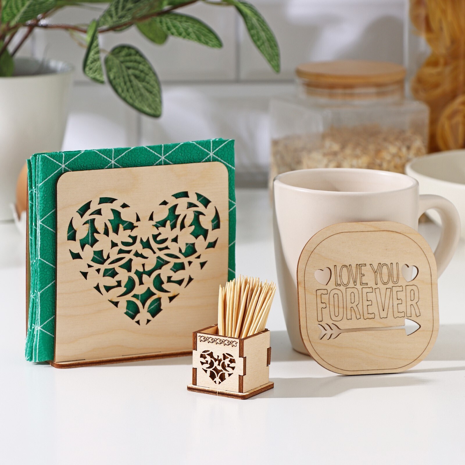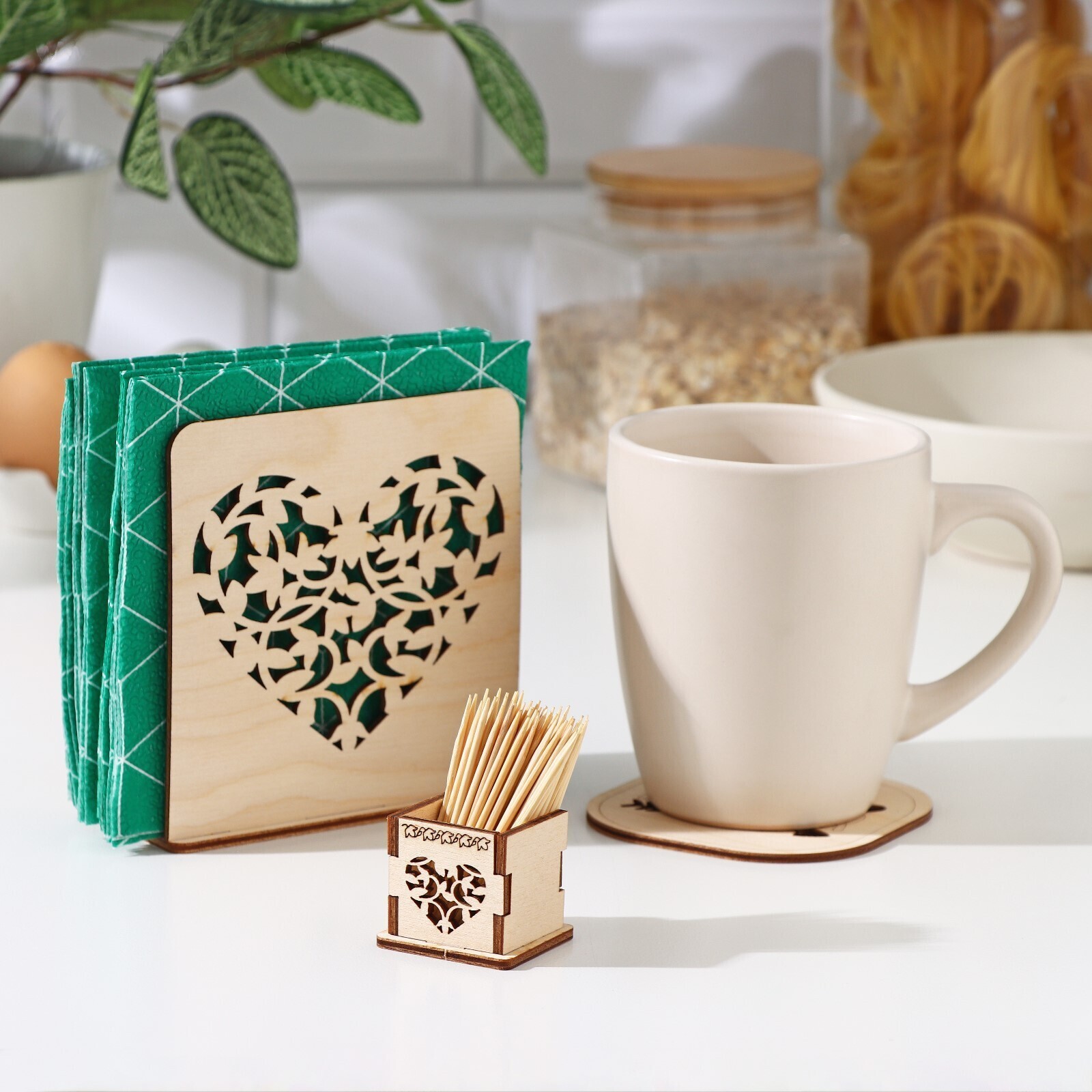 Набор для сервировки "От сердца",салфетница, подставка под горячее и подставка по зубочистки