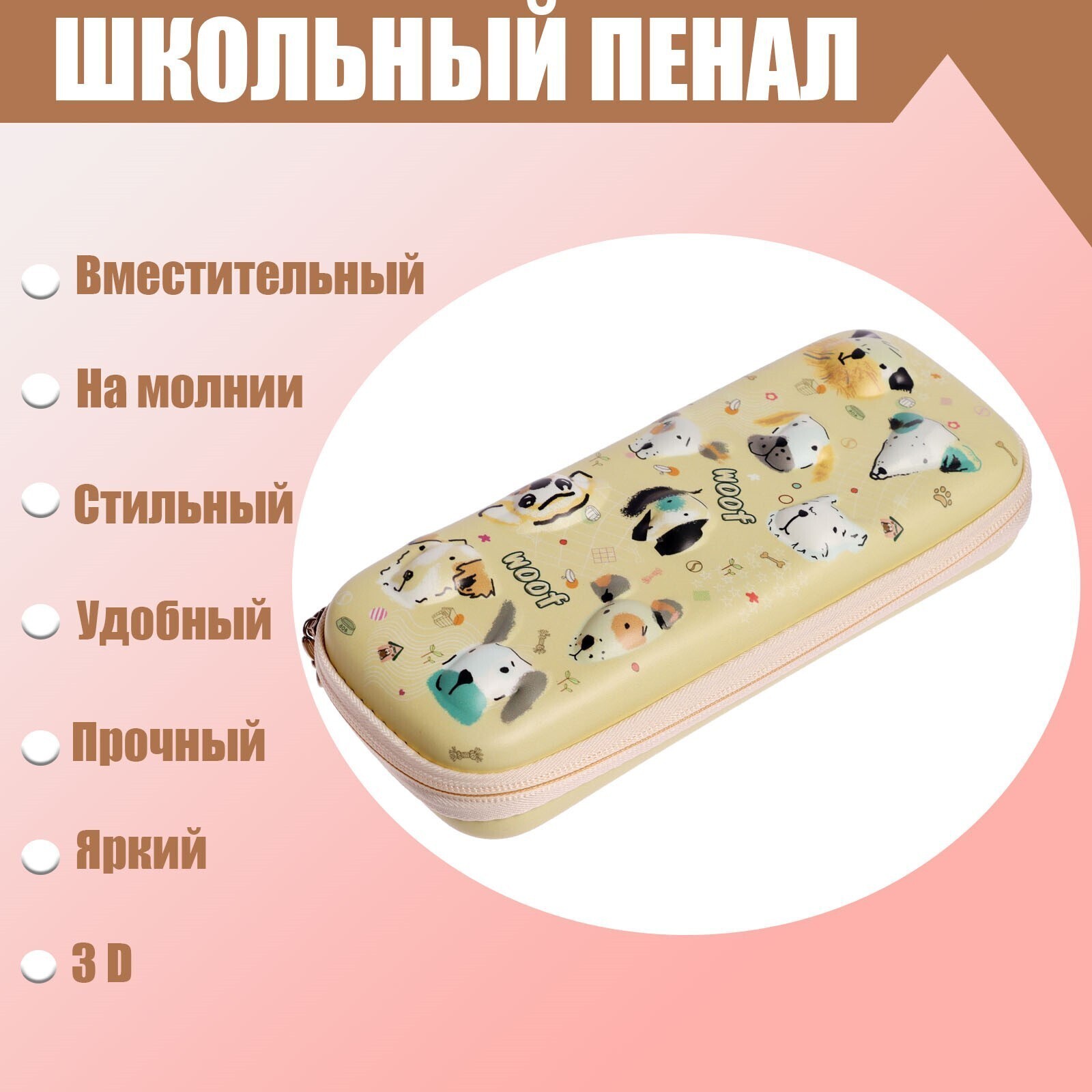 Пенал школьный 3D "Собачки" на молнии, жёлтый