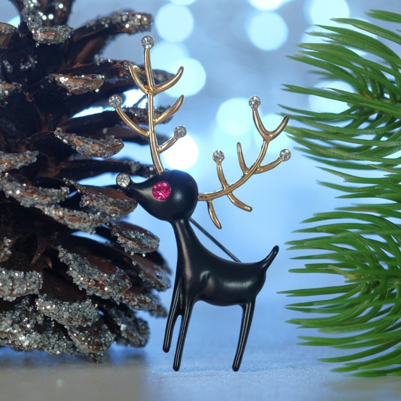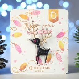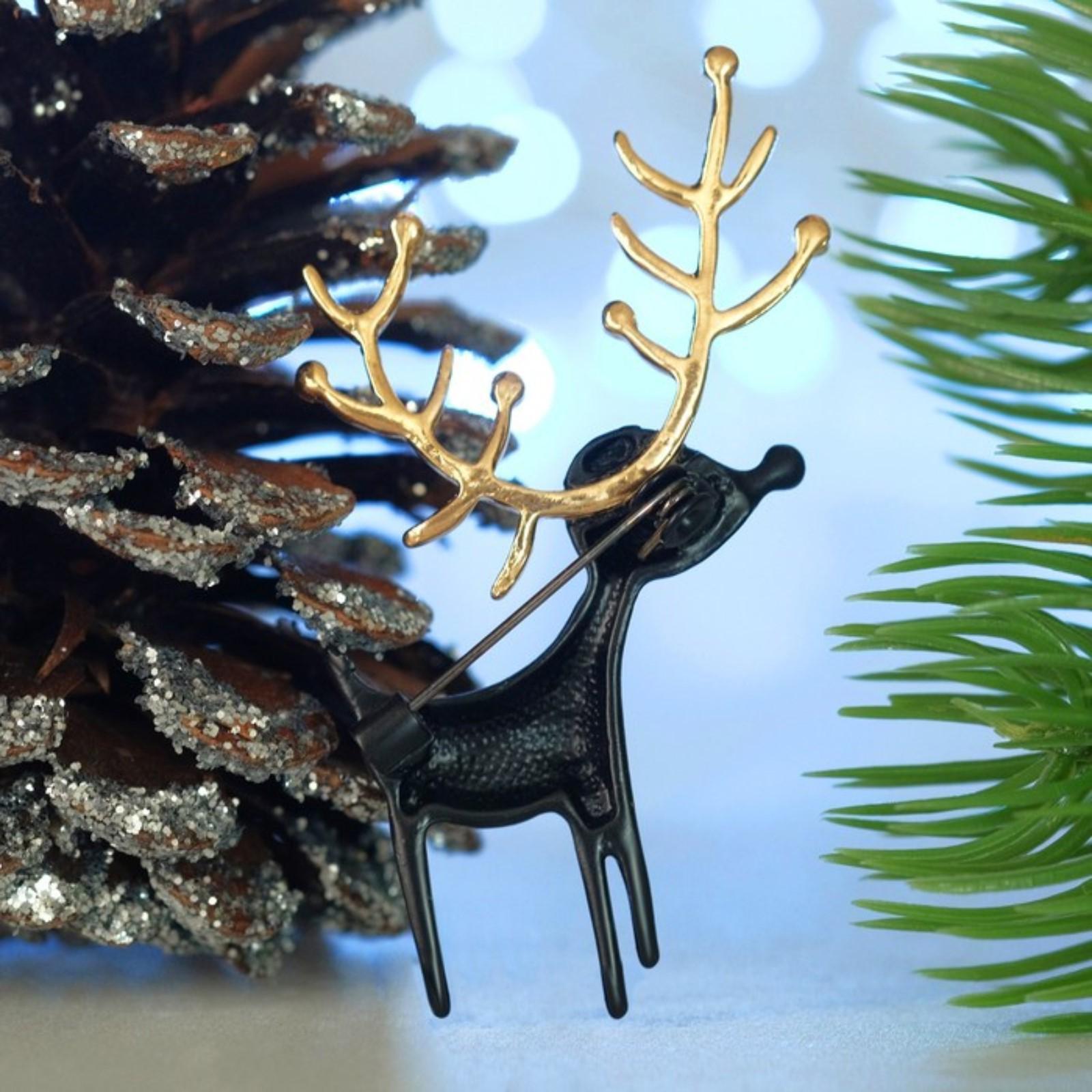 Брошь"Олень" мультяшный, цвет чёрный в золоте