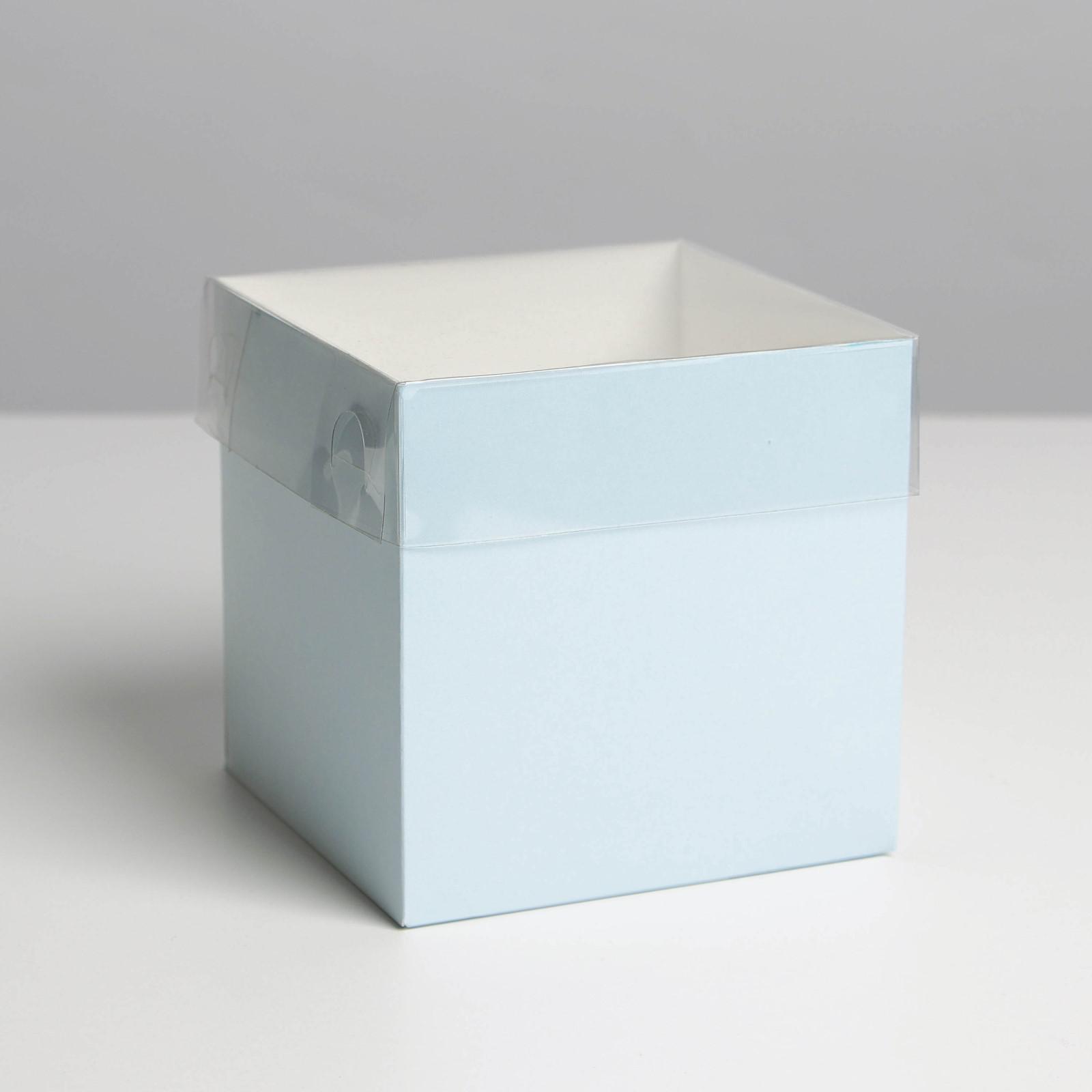 Коробка для цветов с PVC крышкой, голубая, 12 х 12 х 12 см