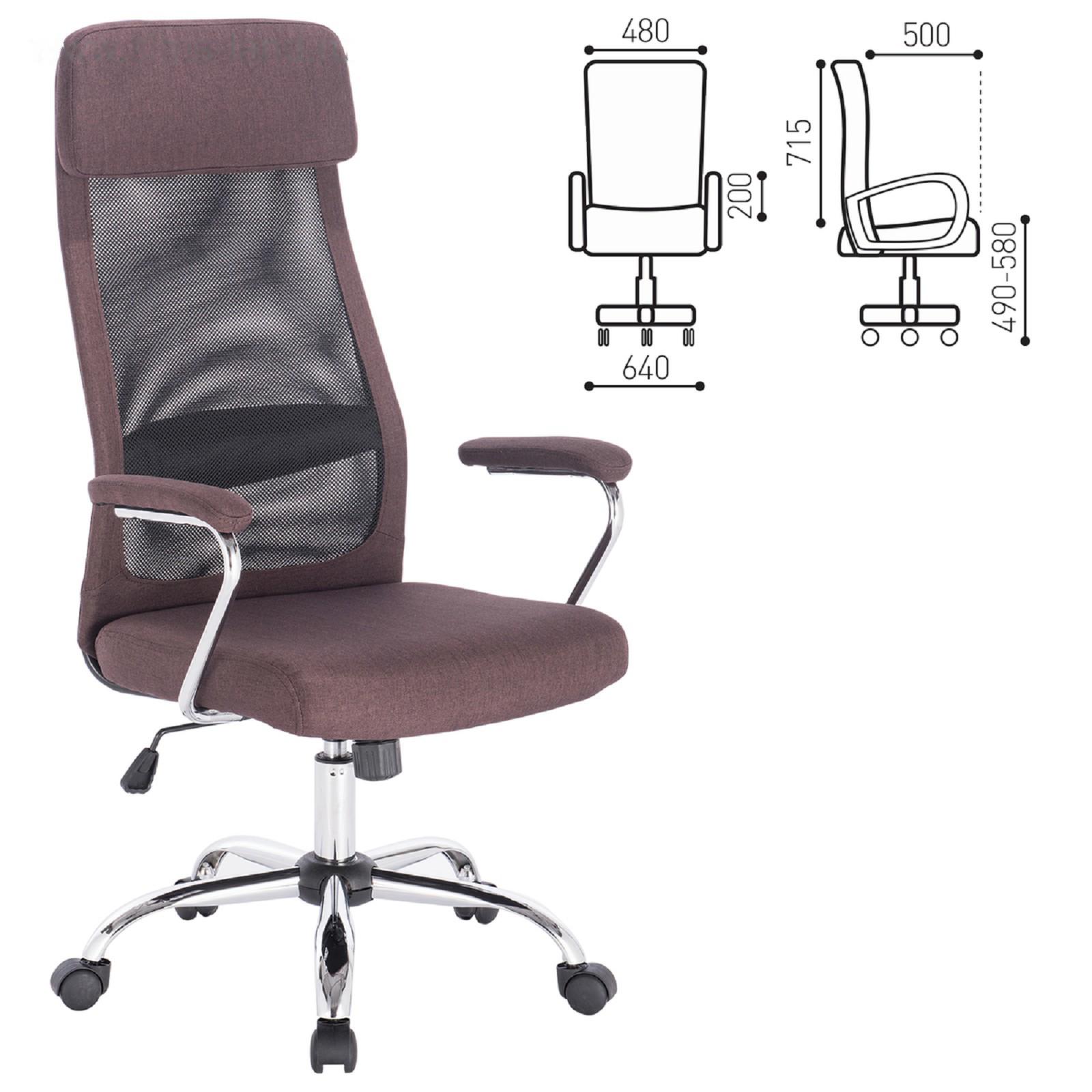Кресло офисное BRABIX "Flight EX-540", хром, ткань, сетка, коричневое
