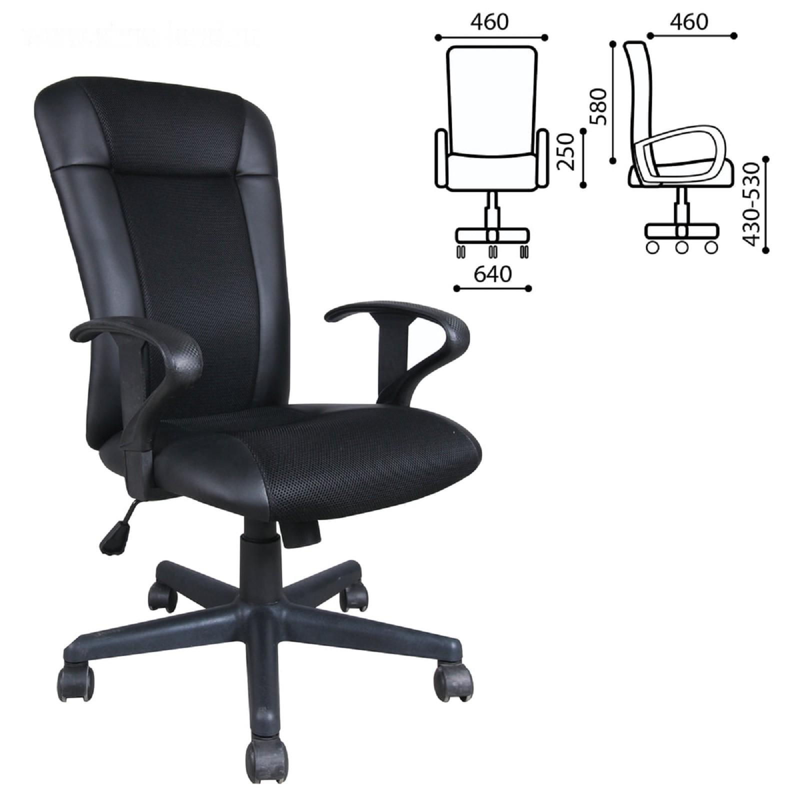 Кресло BRABIX "Optima MG-370", с подлокотниками, экокожа/ткань, черное