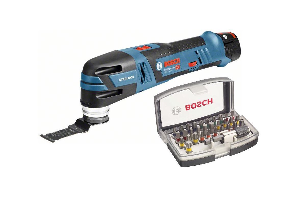 В состав набора входят: Инструмент многофункциональный BOSCH GOP 12V-28 (0.601.8B5.020) 12В 5000-20000об/мин, Набор бит BOSCH 2.607.017.319 1/4'' 25мм 32шт