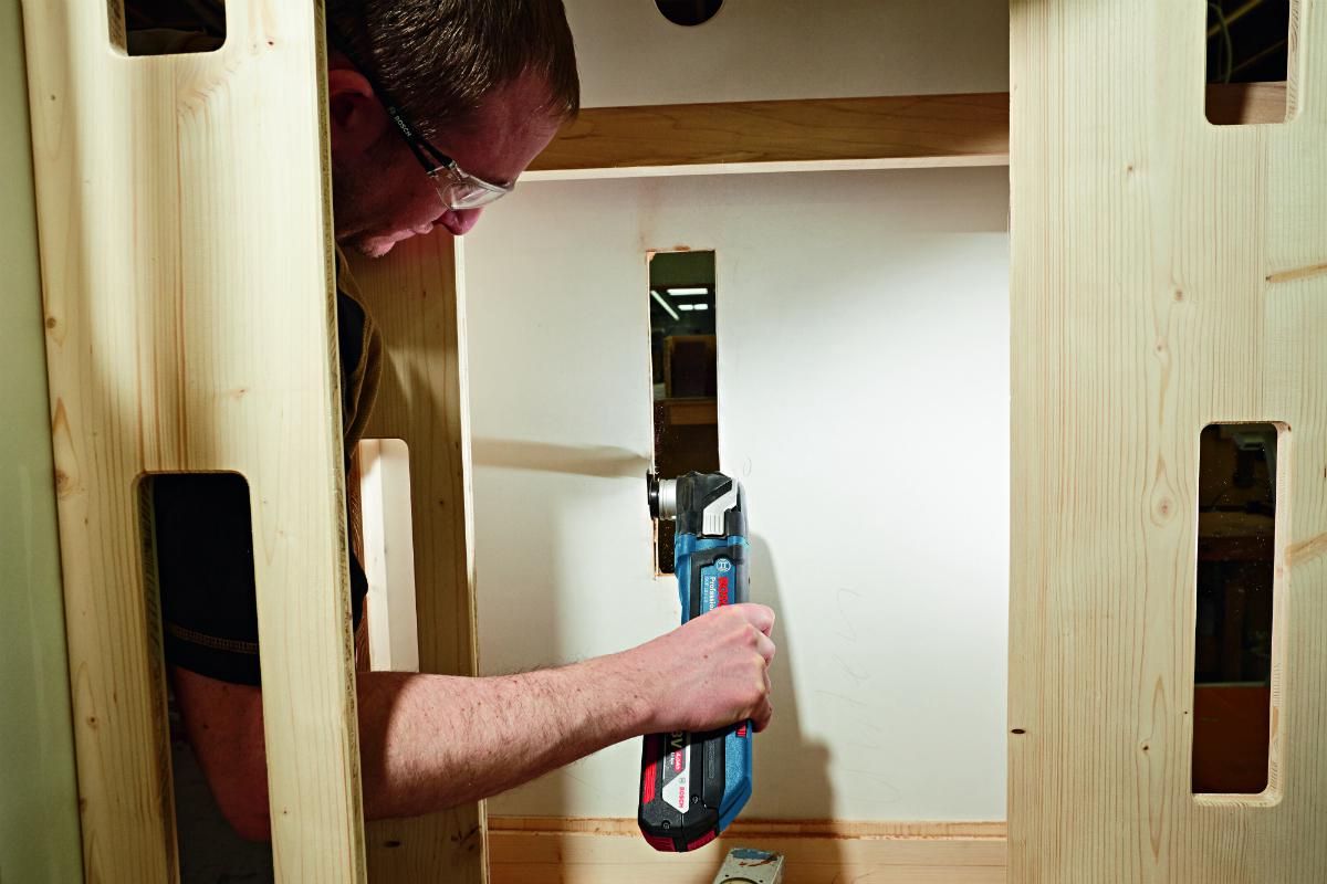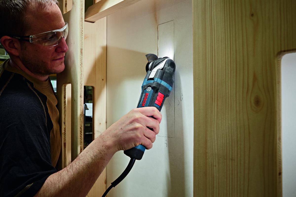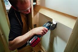 Аккумуляторный универсальный резак Bosch GOP 18V-28 0.601.8B6.003 снабжен бесщеточным двигателем, что говорит о его надежности и долговечности. Двухпозиционная пусковая клавиша исключает необходимость постоянно держать на ней палец. Количество колебаний шпинделя варьируется в диапазоне от 8000 до 20000 в минуту, что позволяет максимально точно подстроиться под конкретный тип работы и материал. В комплект входит большой набор оснастки, что расширяет сферу применения инструмента.