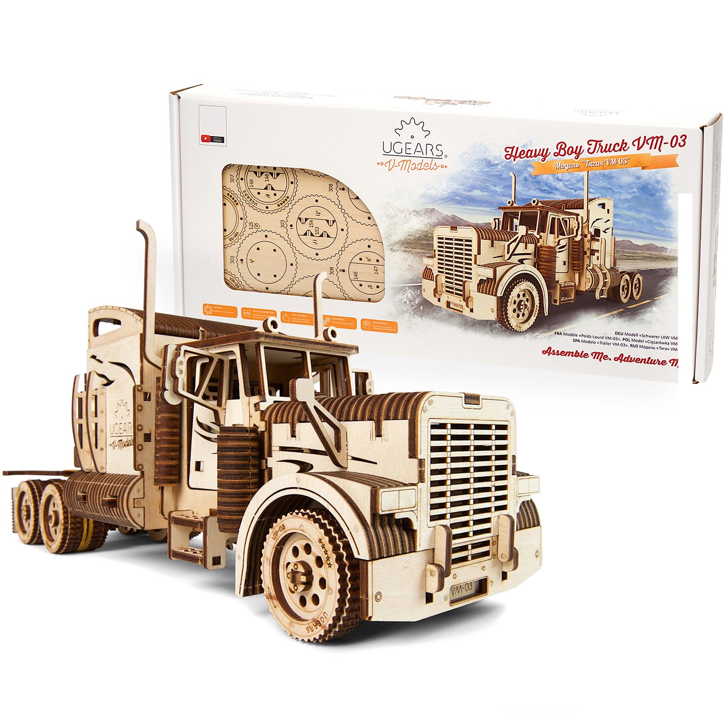 Сборная деревянная модель UGEARS Тягач VM-03 3D-пазл механический конструктор 70056