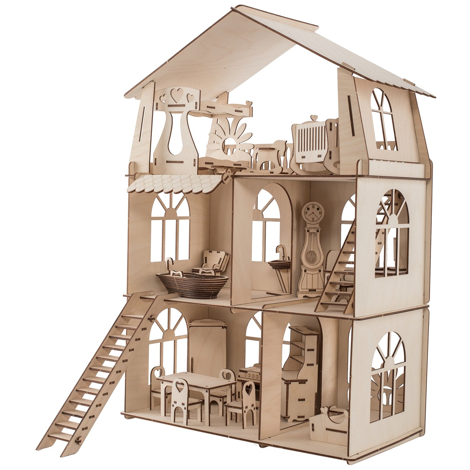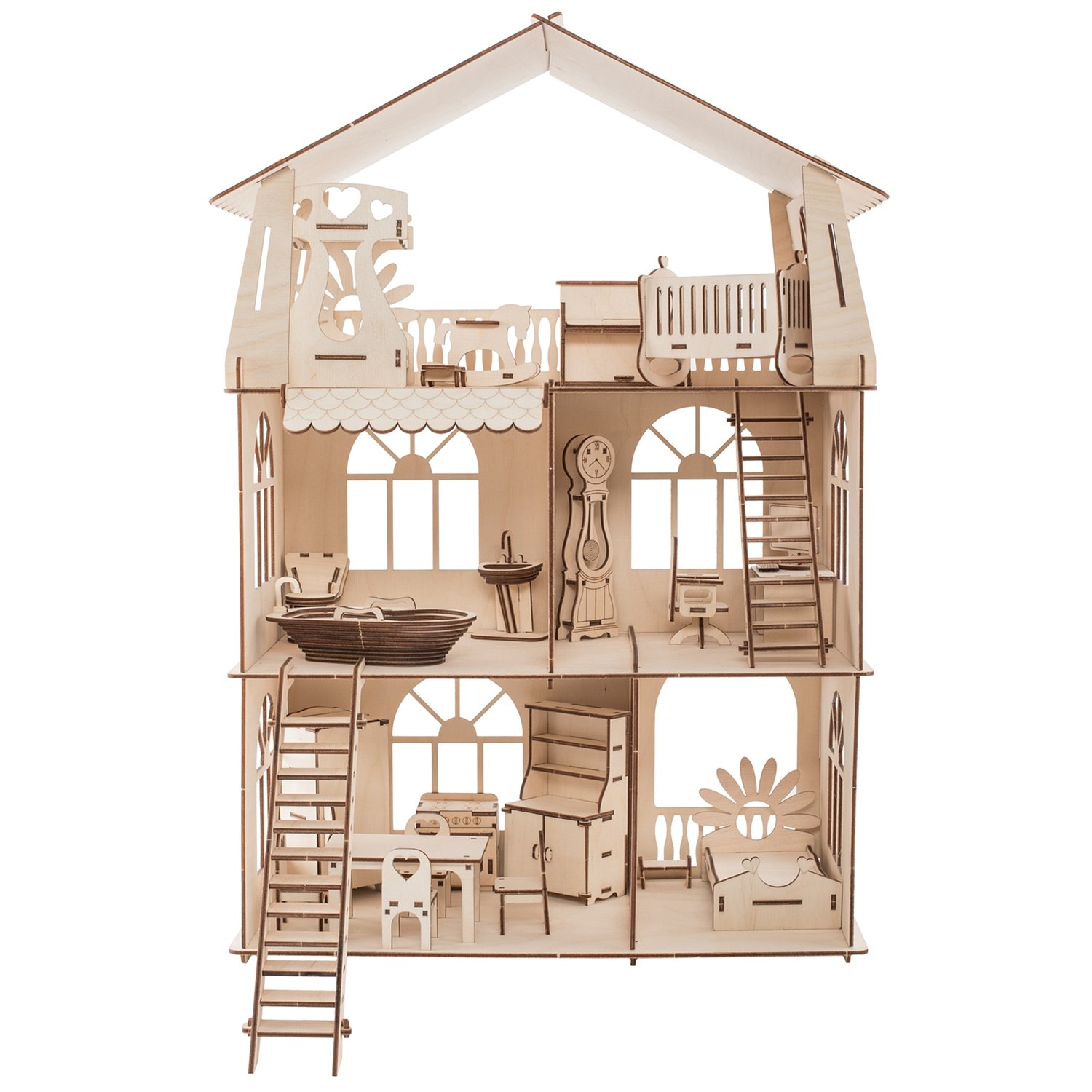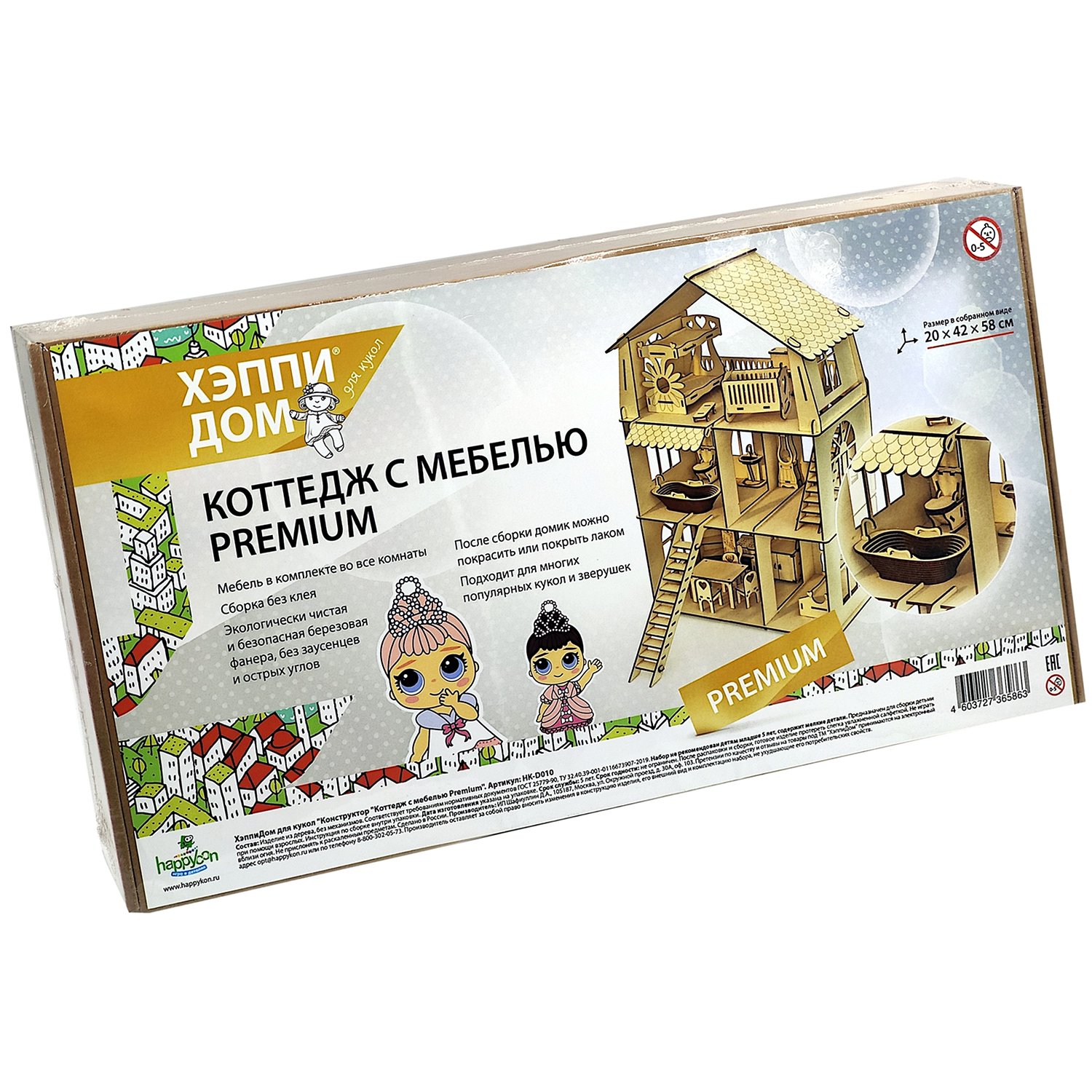 Деревянный конструктор ХэппиДом Кукольный дом для лол с мебелью Premium HK-B010
