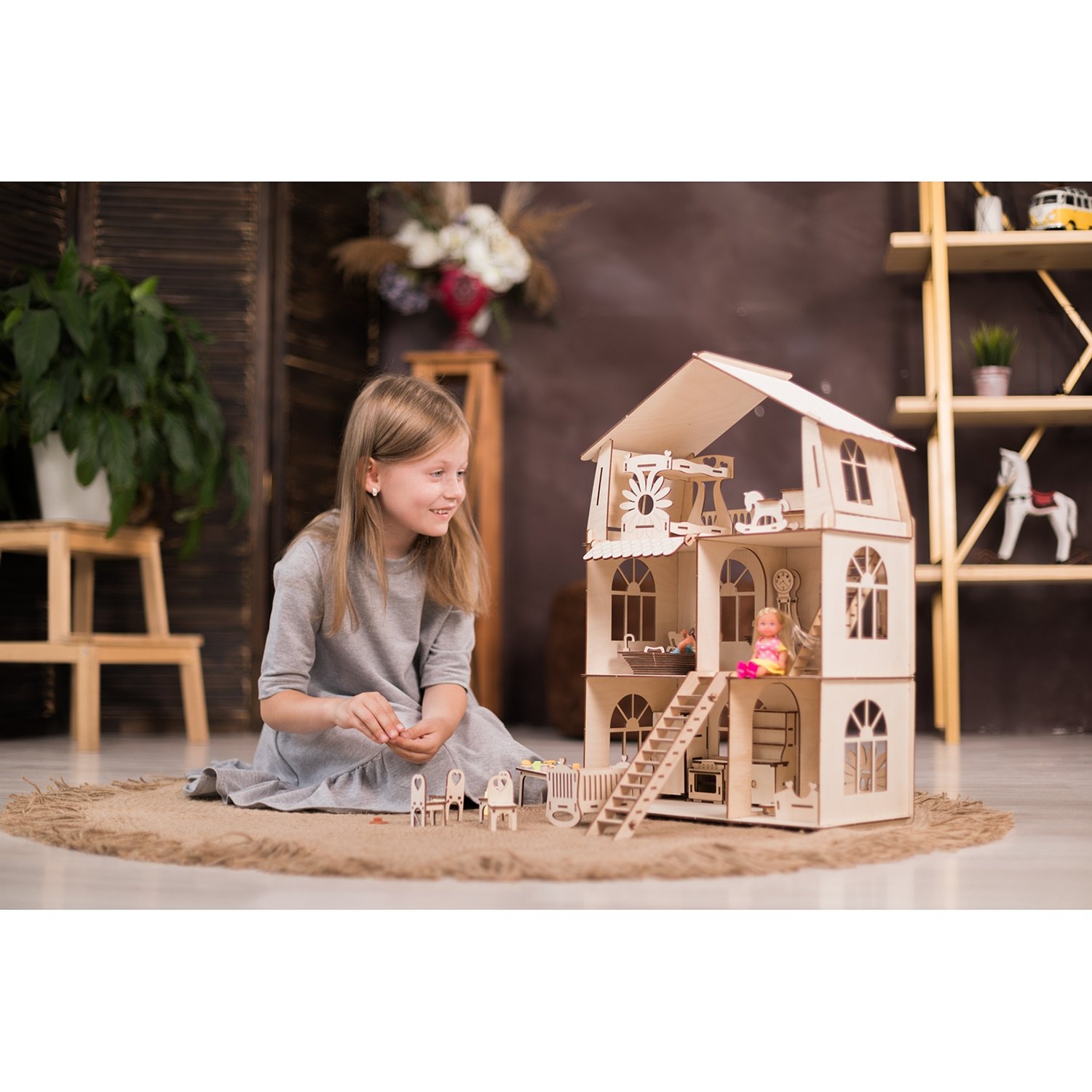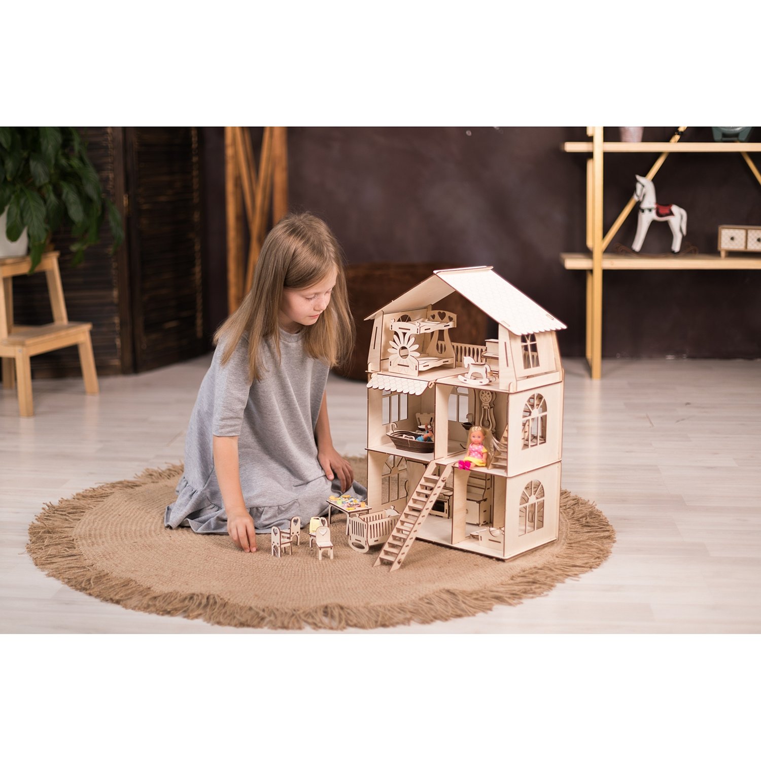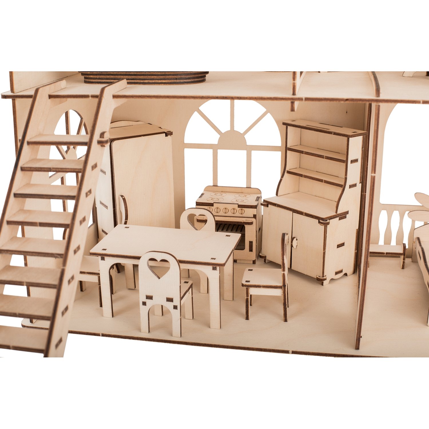 Деревянный конструктор ХэппиДом Кукольный дом для лол с мебелью Premium HK-B010