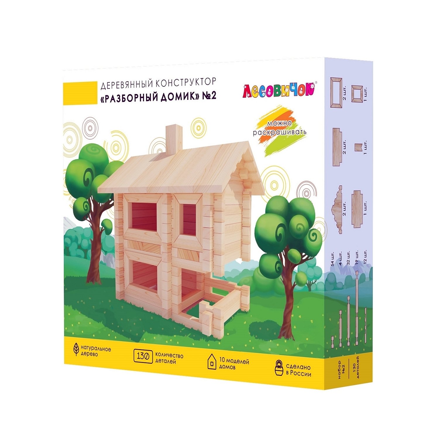 Конструктор ЛЕСОВИЧОК Разборный домик №2 130 деталей 56103