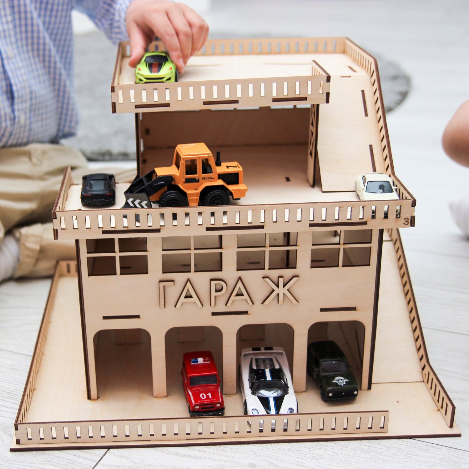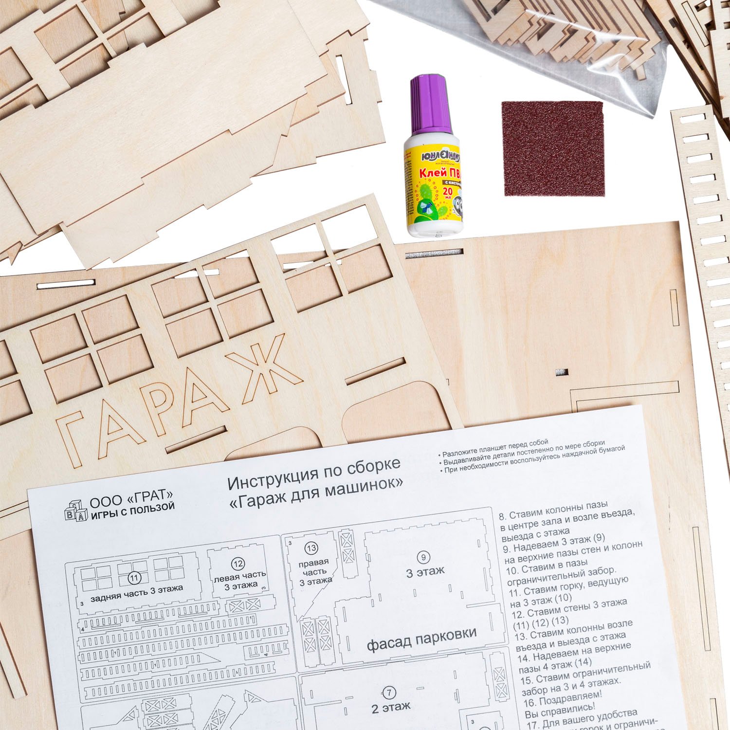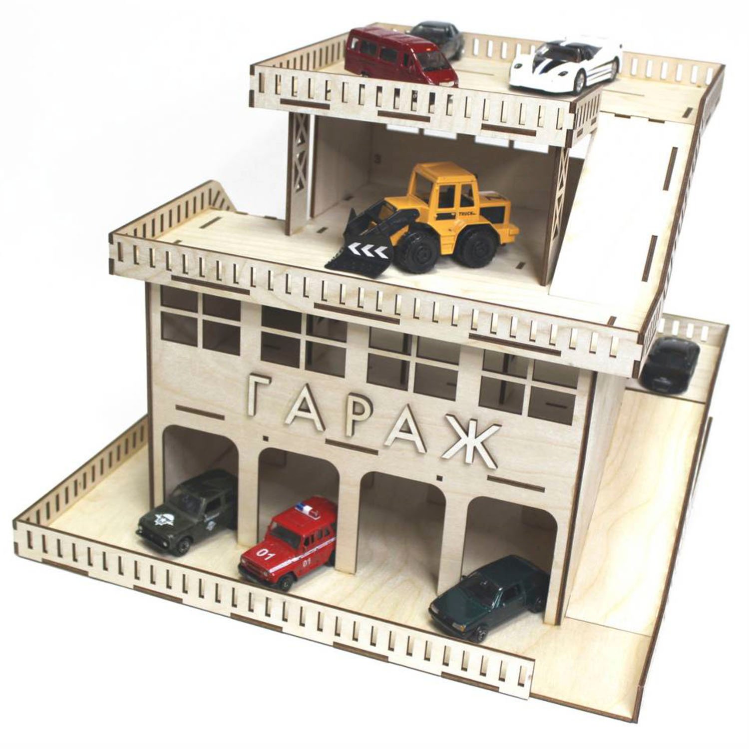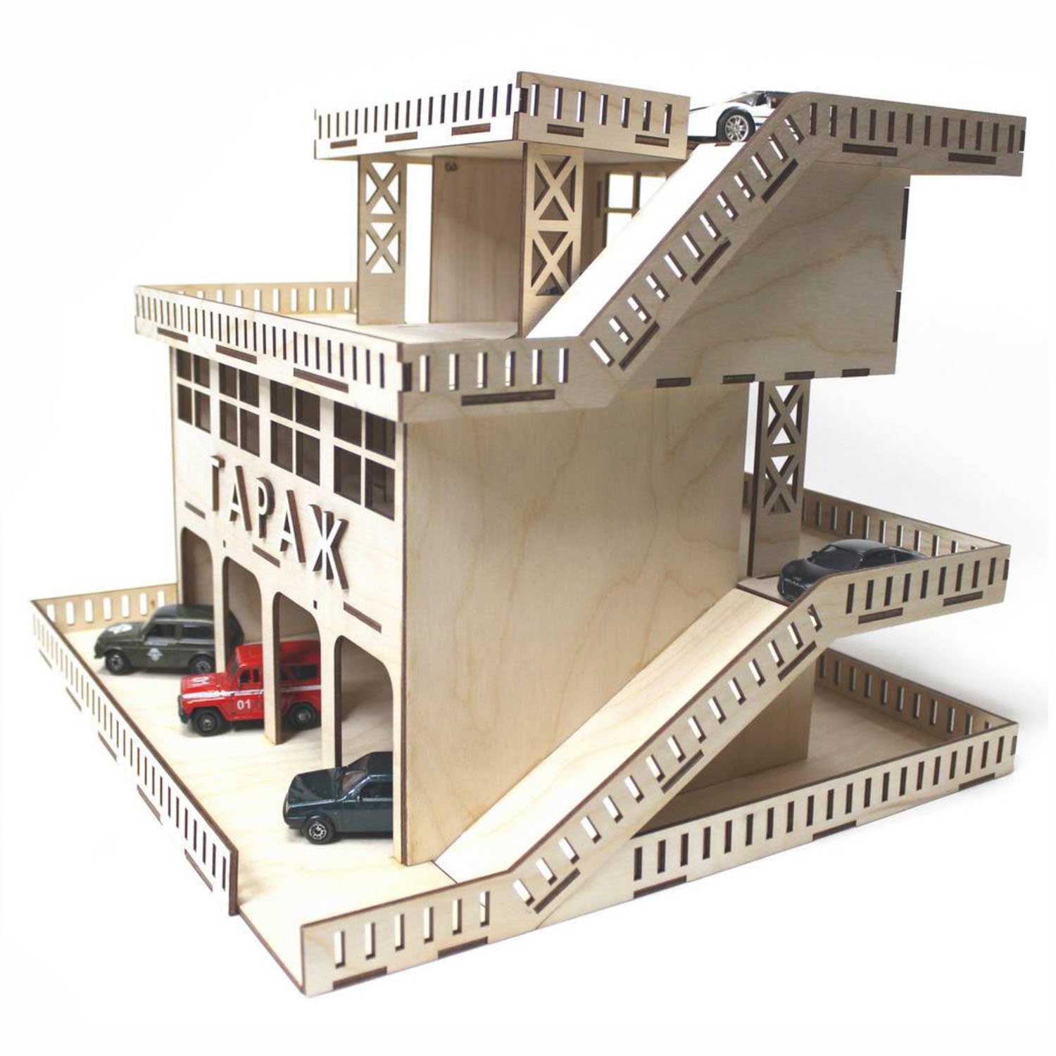 Сборная модель ГРАТ Деревянный Гараж для машин гараж