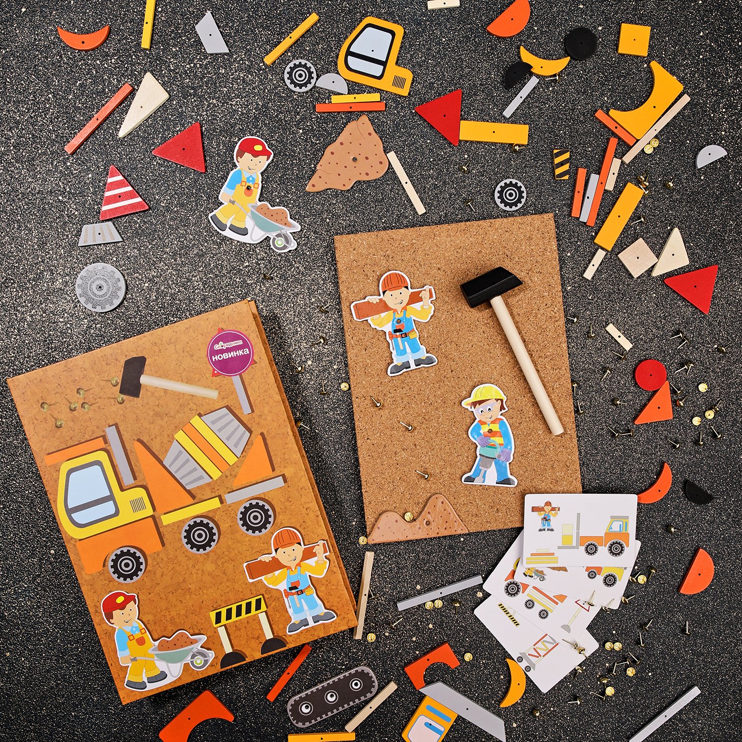 Конструктор СМОРОДИНКА Строительные машины и дорожные знаки из деревянных деталей 70-0720