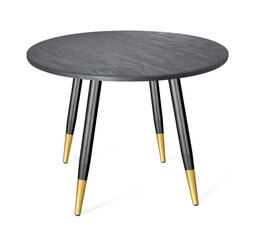 Столешница из МДФ смотрится аккуратно и привлекательно, поскольку имеет плавный закругленный переход от лицевой поверхности к боковым кромкам. Рельефные и структурные формы, которые визуально неотличимы от натурального мрамора. Оригинальную нотку придает золотое напыление в нижней части опоры. Четкое разделение черного и золотого прекрасно гармонируют со столешницами Sheffilton и каркасом стула в аналогичном стиле SHT-S85-1 черный муар/золото.