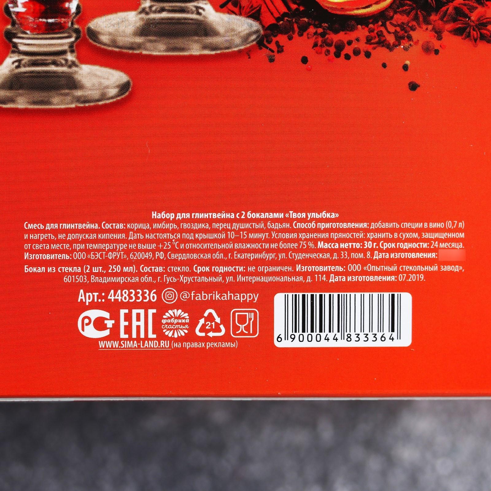 Подарочный набор для глинтвейна «Твоя улыбка»: специи 30 г, бокалы 250 мл, 2 шт.