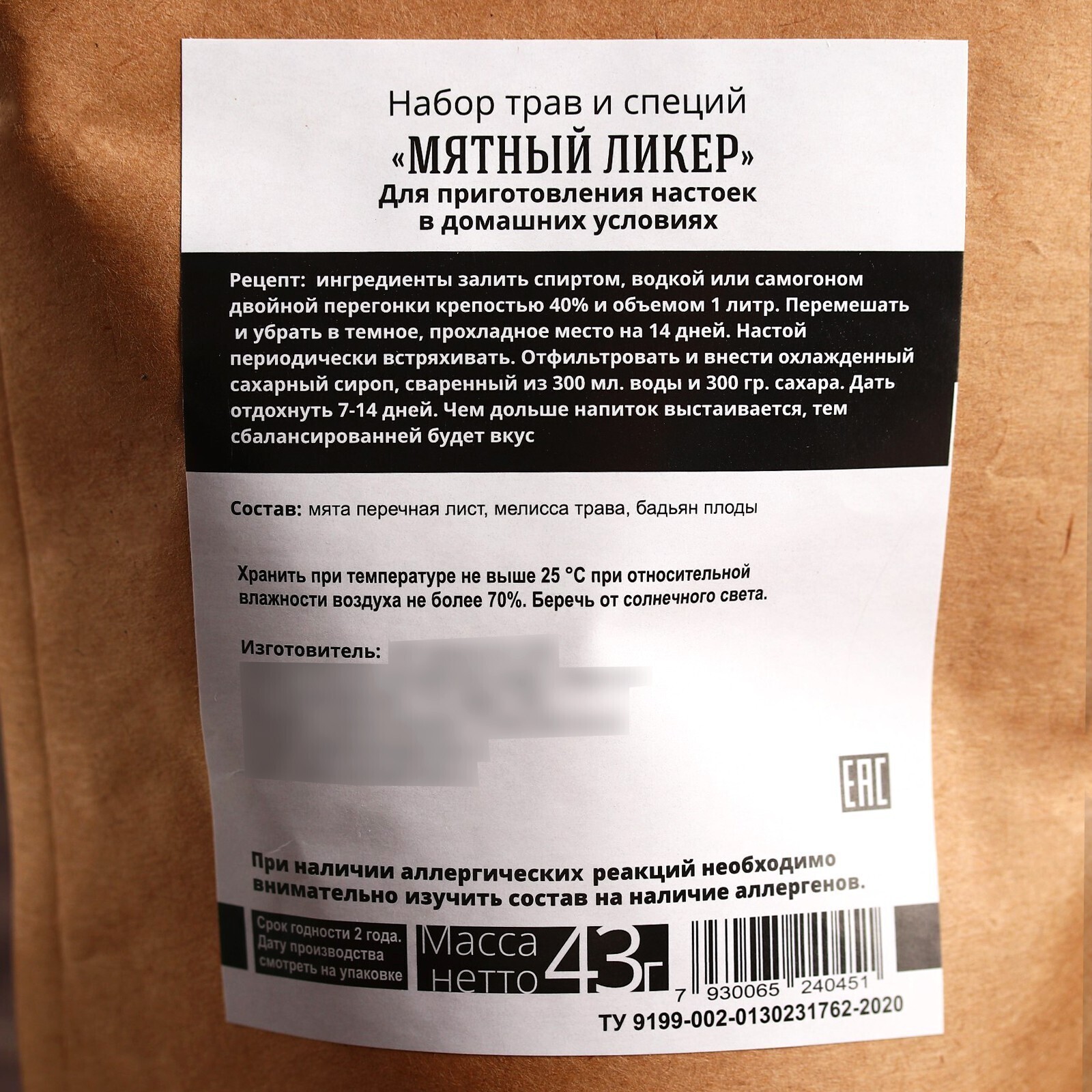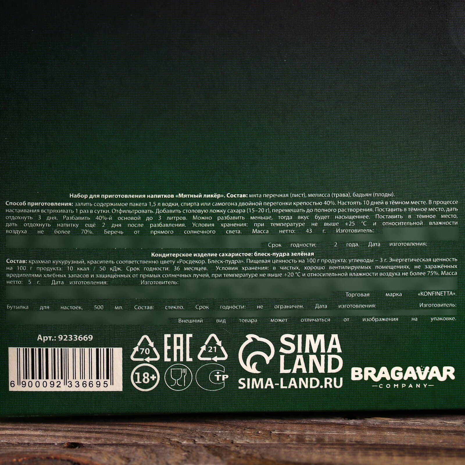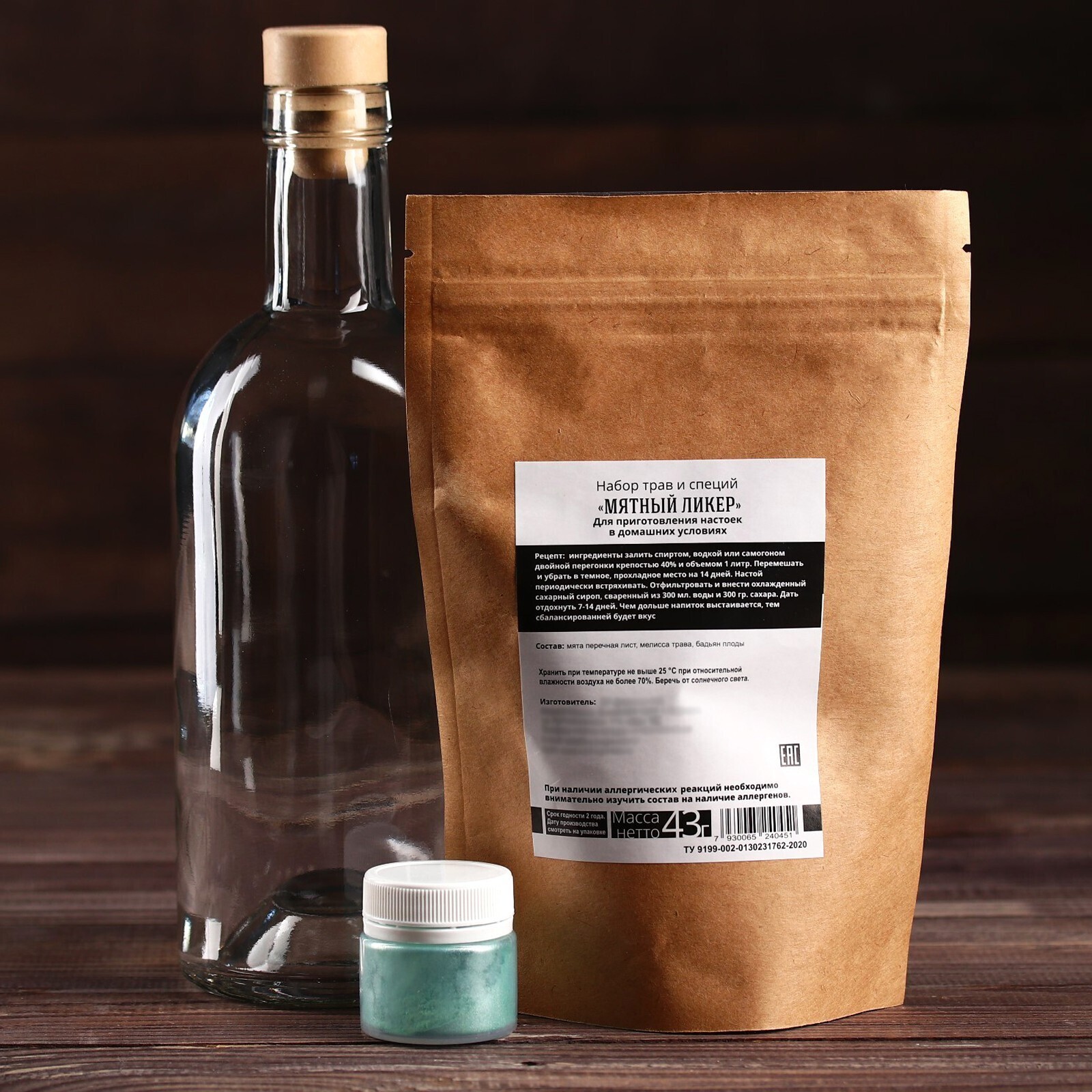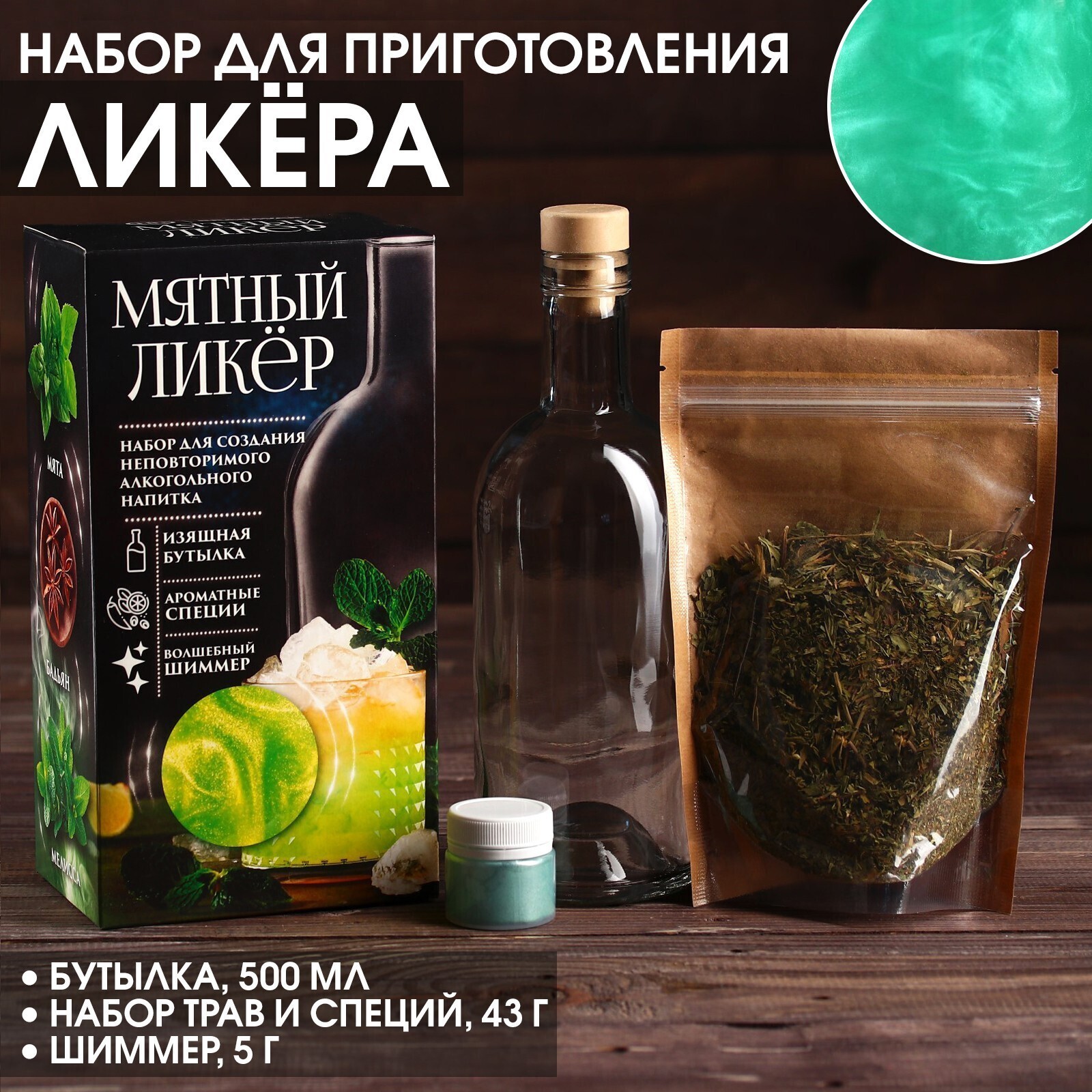 Набор для приготовления алкоголя «Мятный ликёр»: бутылка 500 мл., набор трав и специй 43 г.,шимер 5 г.