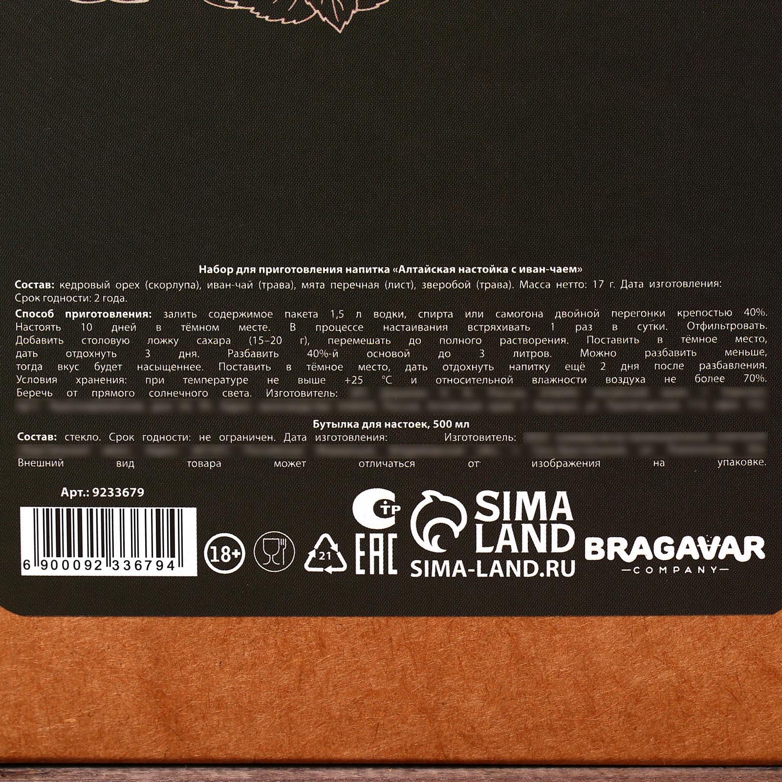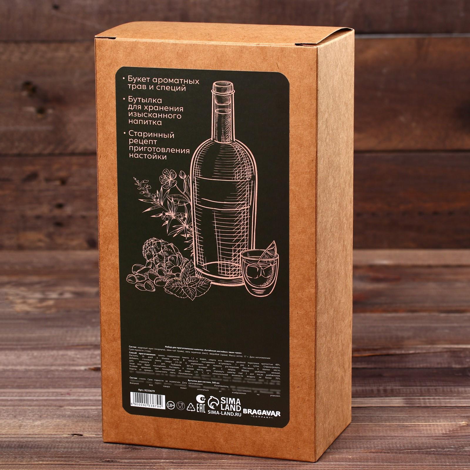 Набор для приготовления настойки «Алтайская с Иван-чаем»: бутылка 500 мл., набор трав и специй 35 г., инструкция
