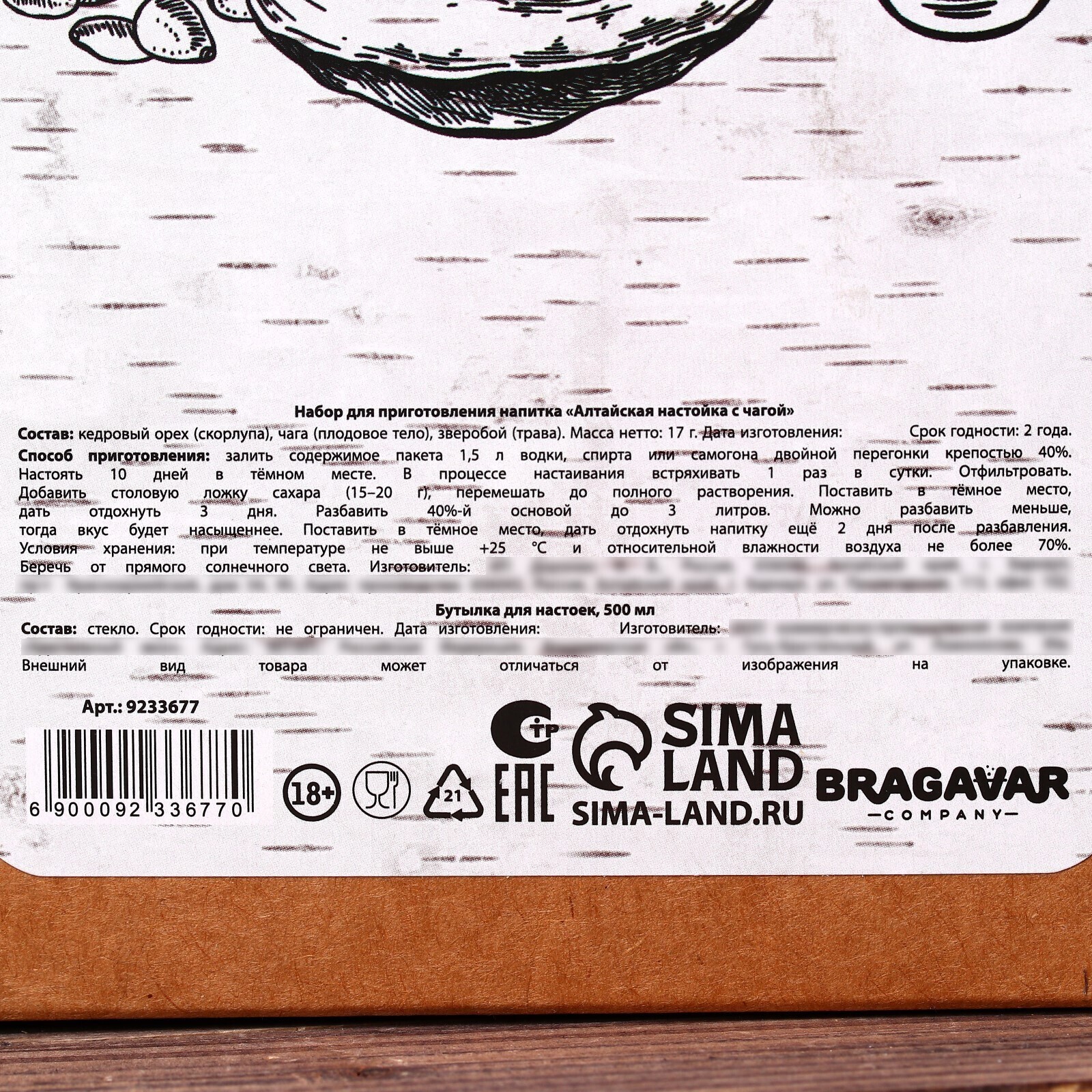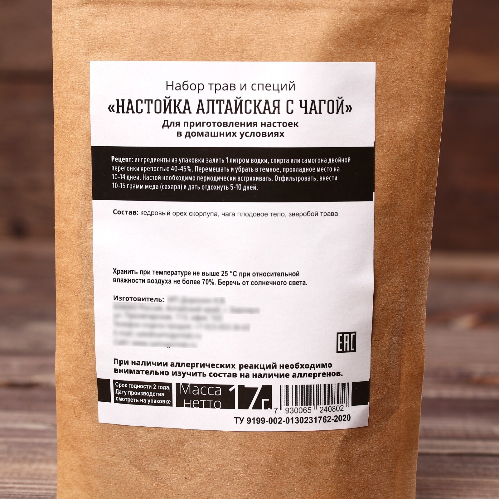 Набор для приготовления напитка «Алтайская настойка с чагой»