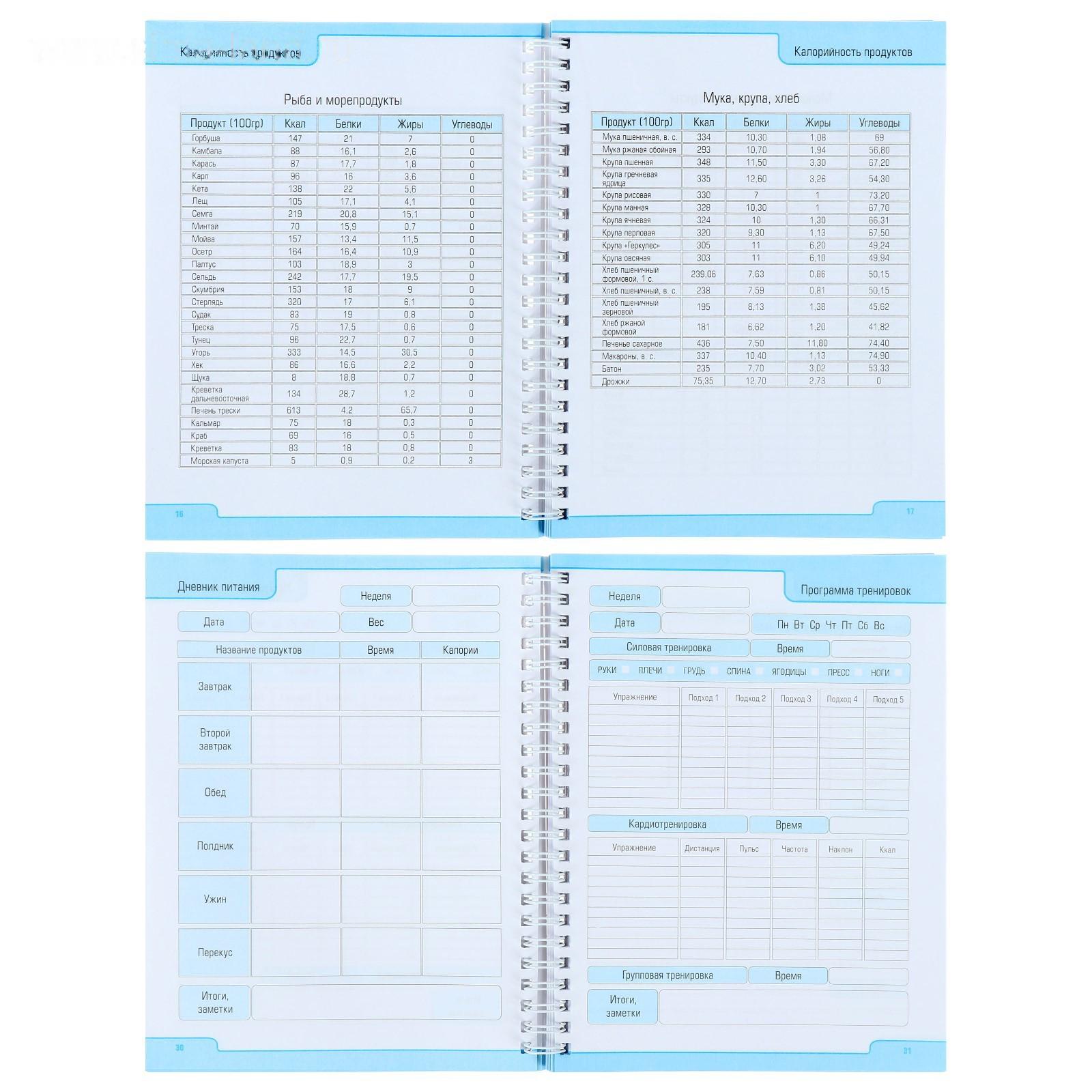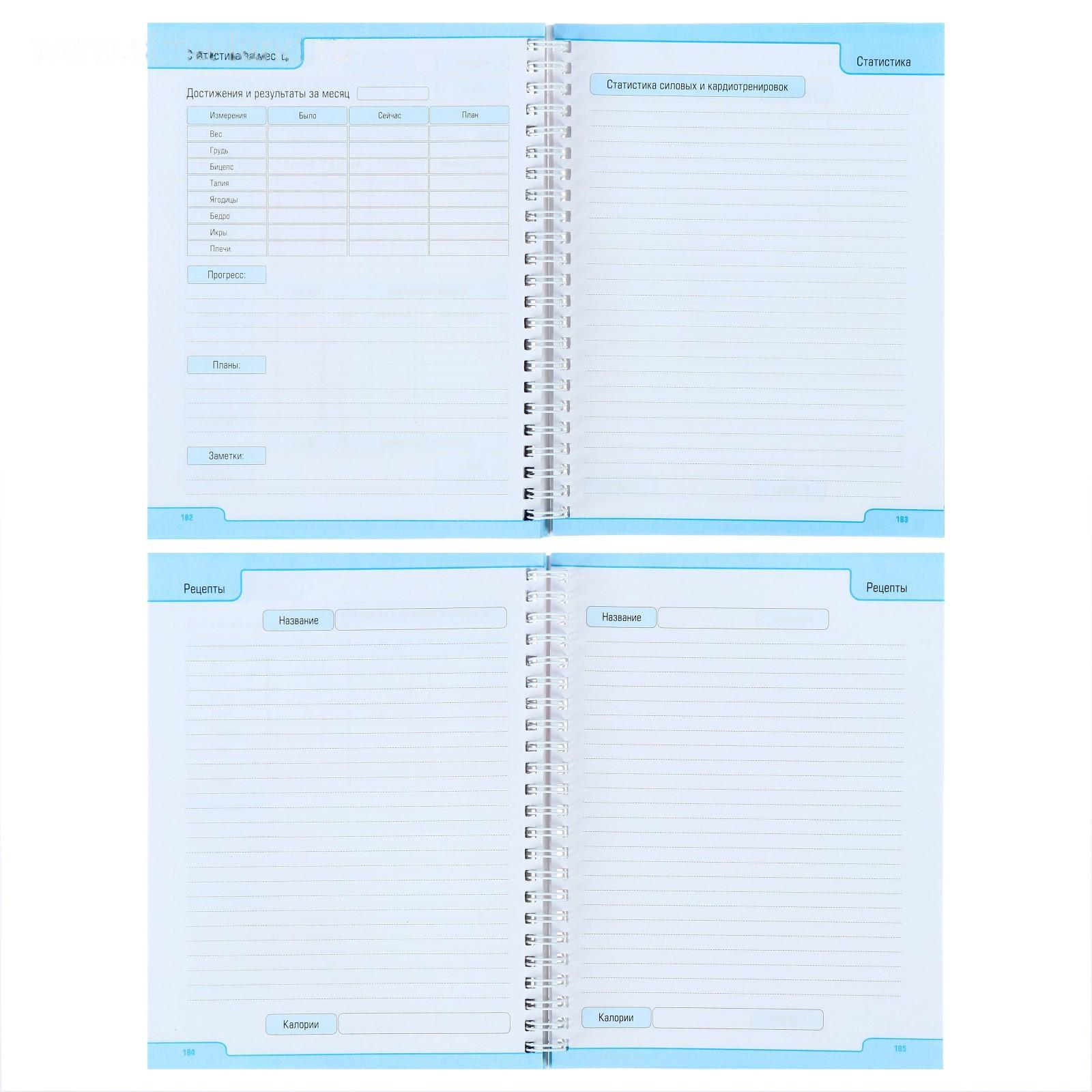 Фитнес-дневник А5, 96 листов, на гребне, Start doing don't stop, обложка мелованный картон, глянцевая ламинация, со справочным материалом