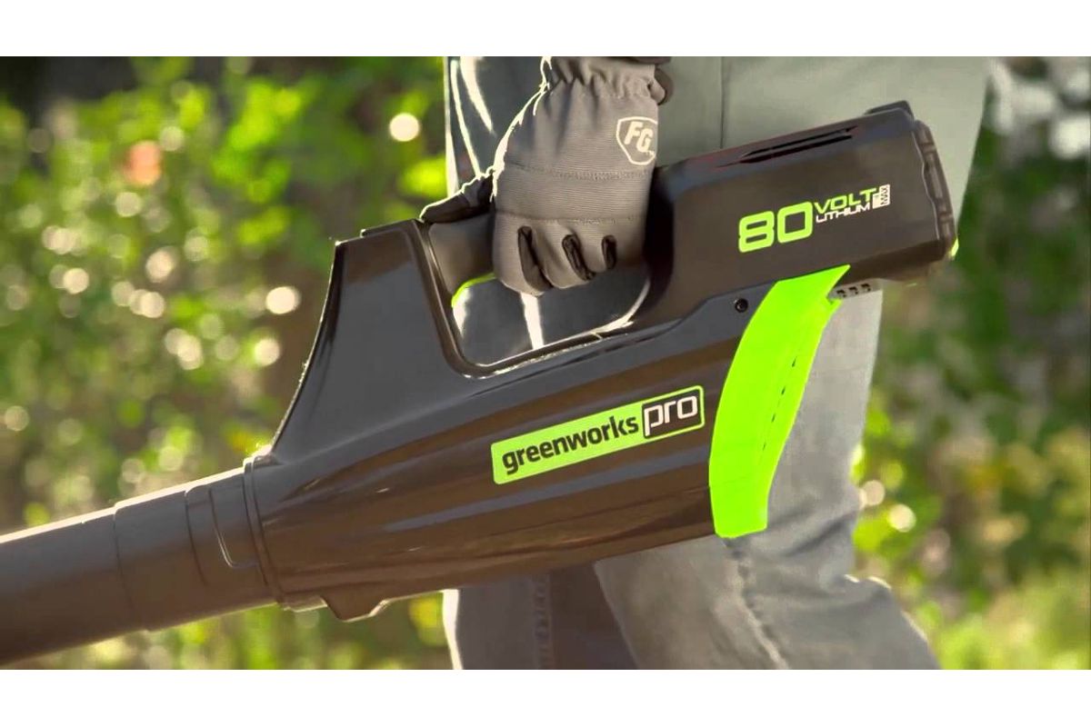 Воздуходув аккумуляторный Greenworks GD80BL из линейки устройств 80 вольт предназначен для уборки территорий от опавших листьев, легкого мусора и пыли. Это профессиональная модель воздуходува с осевой конструкцией вентилятора. Такой тип вентилятора обладает высокими показателями скорости воздушного потока - до 200 км/ч, а объём воздушного потока - 14 куб.м/мин.