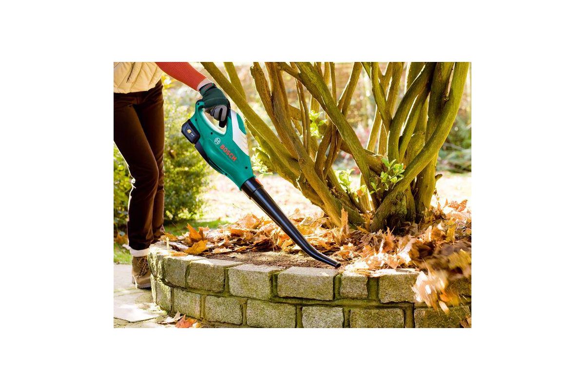 BOSCH ALB 18 LI — воздуходувка для чистки загородного участка от веток, сухих листьев и мелкого мусора. Модель выполнена из прочного пластика, оснащена электрическим двигателем, который работает от аккумулятора. Время беспрерывной работы — 10 мин. Сопло снимается для удобного хранения инструмента. Максимальная скорость воздушного потока — 210 км/час. Время зарядки — 3,5 часа.