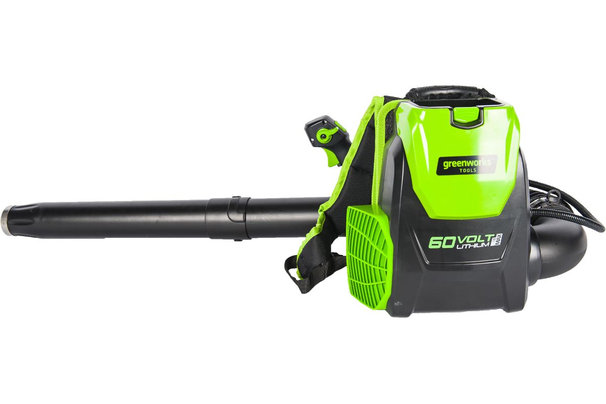 Воздуходувка ранцевая аккумуляторная Greenworks GD60BPB из линейки устройств 60 вольт – отличный выбор для продолжительных работ по уборке территорий от опавших листьев, пыли и прочего мусора.
