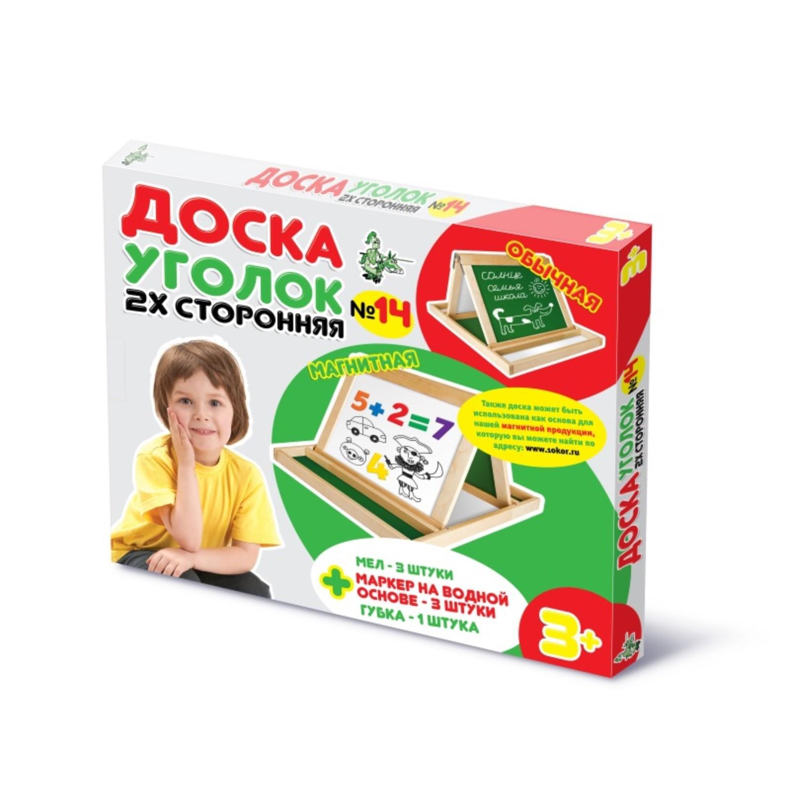 Магнитную доску - уголок без труда и дополнительных приспособлений легко установить на столе и можно сразу приступить к игре. Входящие в комплект мелки и маркеры помогут в игровой форме сделать обучение ребёнка легким и доступным занятием.