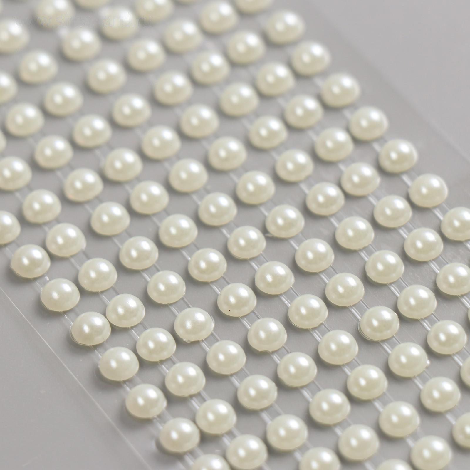 Наклейка пластик стразы "Белые полужемчужины" d=0,6 см 30,5х7 см