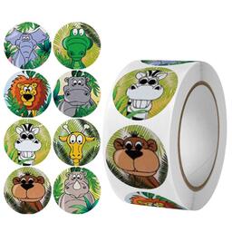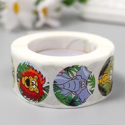 Наклейка бумага "Звери Африка" d=2,5 см 500 шт в рулоне 3х6,5х6,5 см