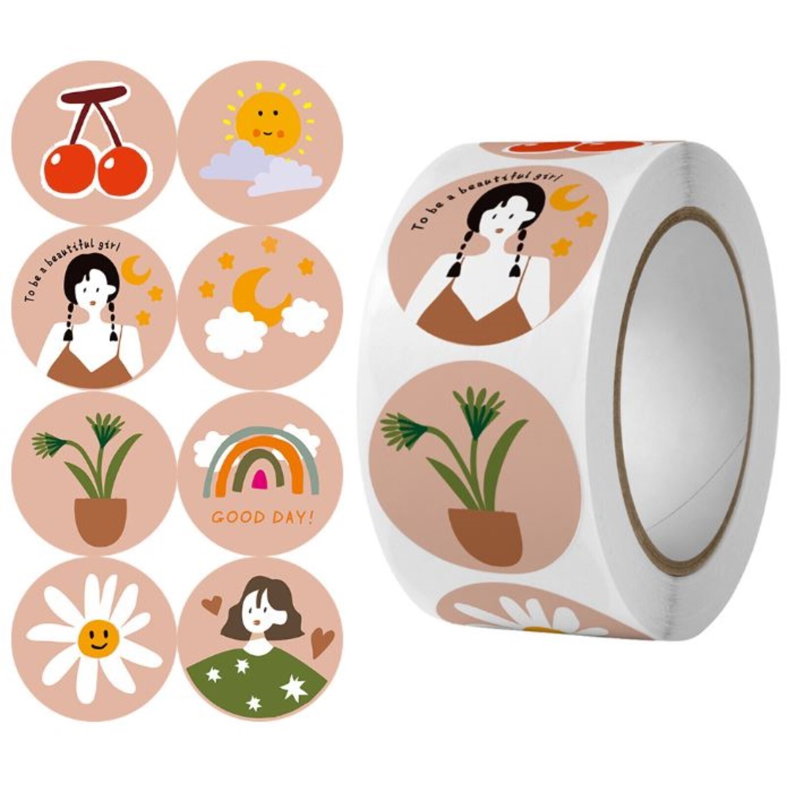 Наклейка бумага "День красавицы" d=2,5 см 500 шт в рулоне 3х6,5х6,5 см