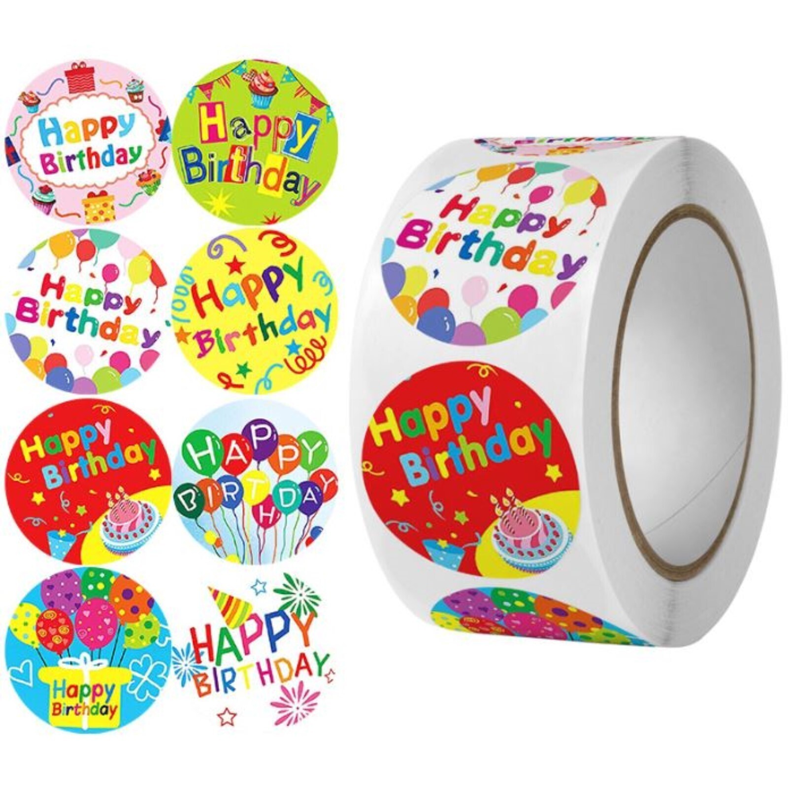 Наклейка бумага "С днём рождения!" d=2,5 см 500 шт в рулоне 3х6,5х6,5 см