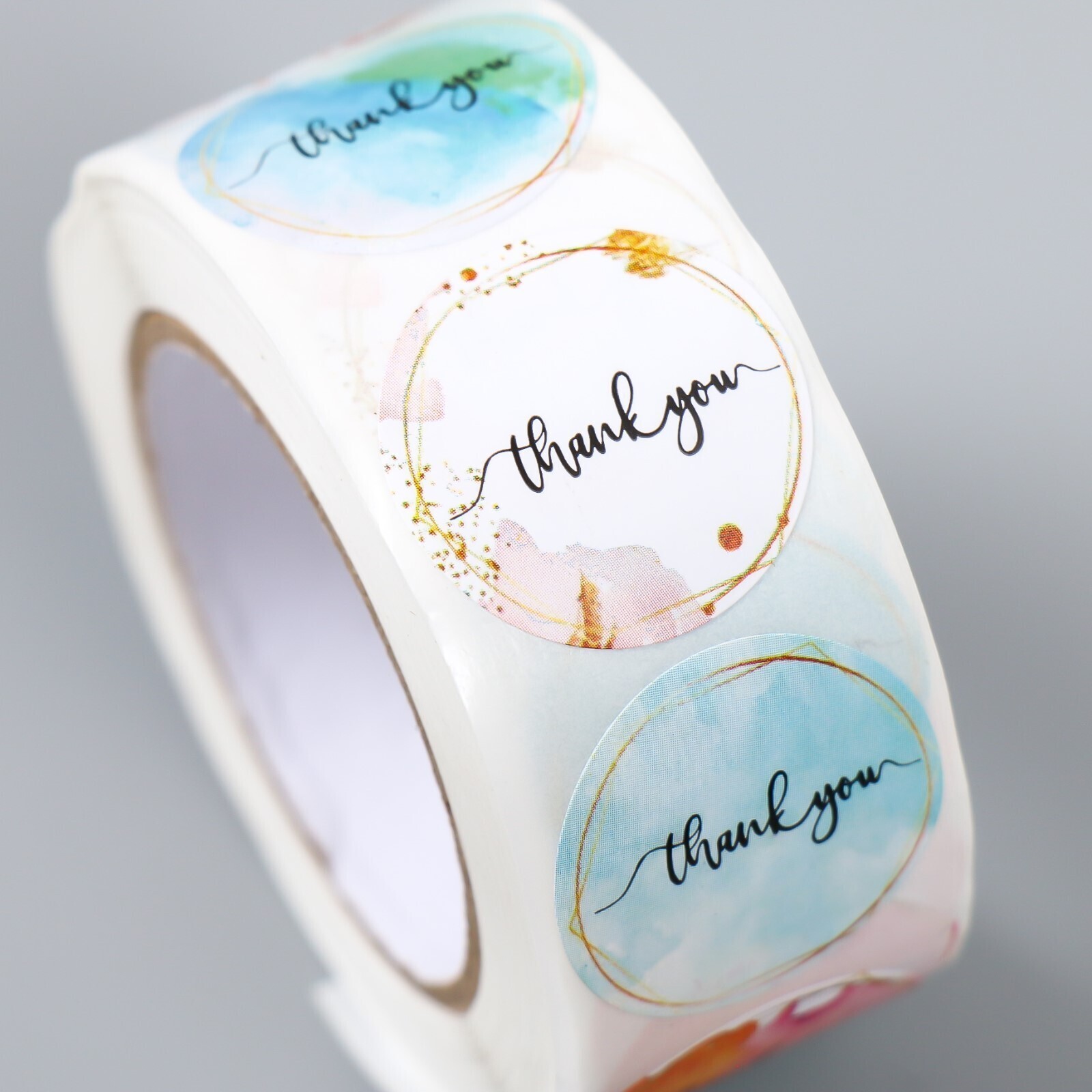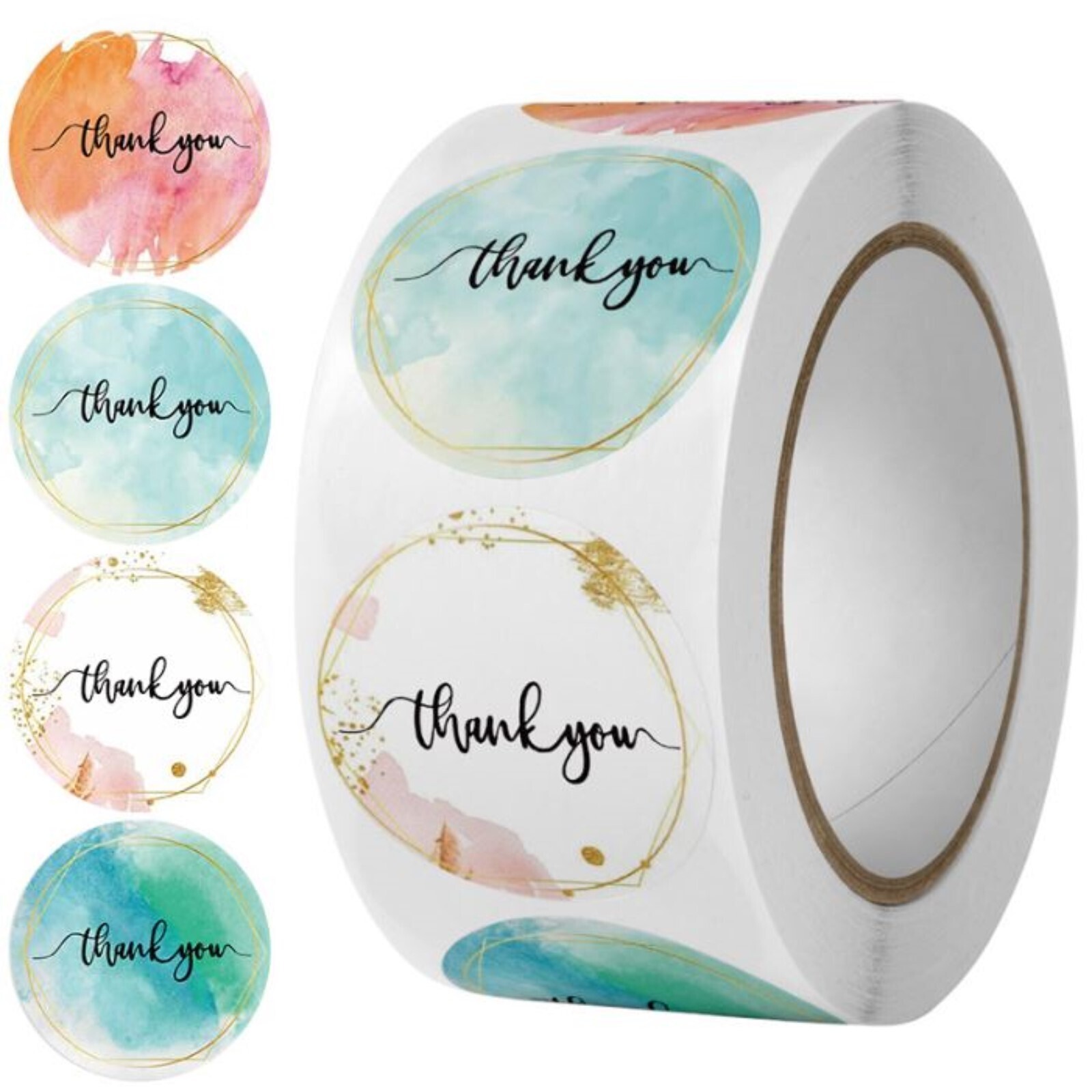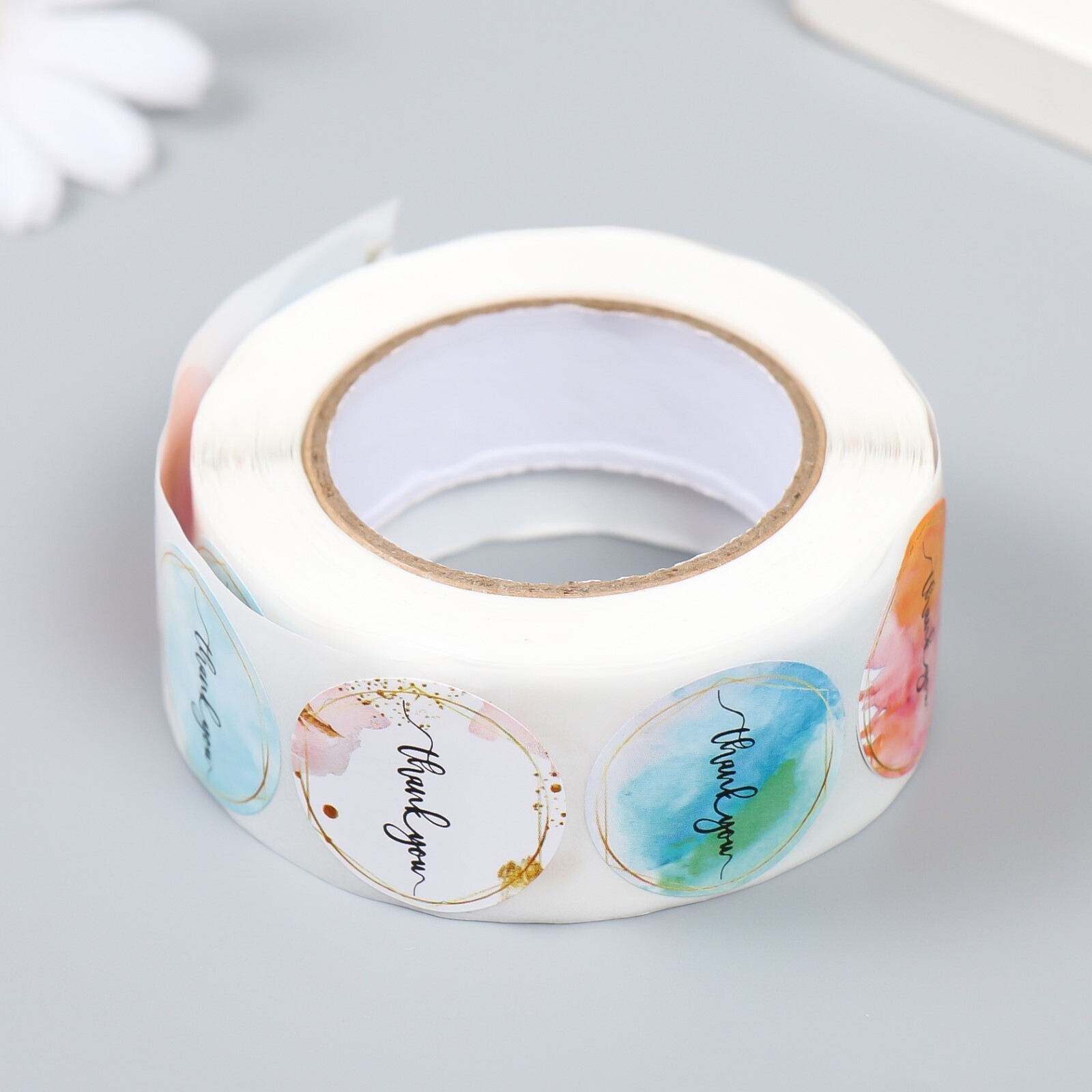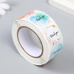 Наклейка бумага "Акварель. Благодарность" d=2,5 см 500 шт в рулоне 3х6,5х6,5 см