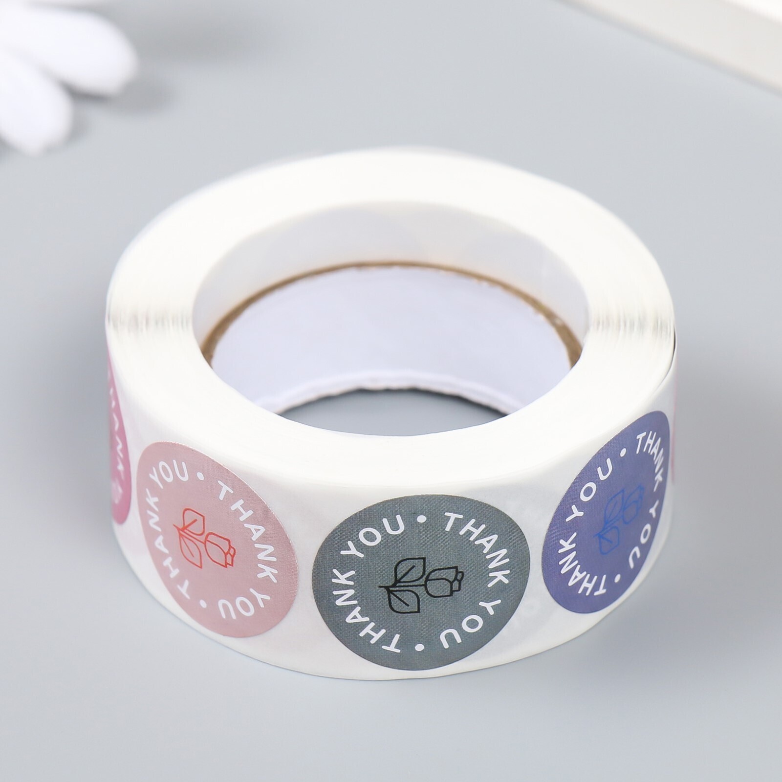 Наклейка бумага "Розочка. Благодарность" d=2,5 см 500 шт в рулоне 3х6,5х6,5 см