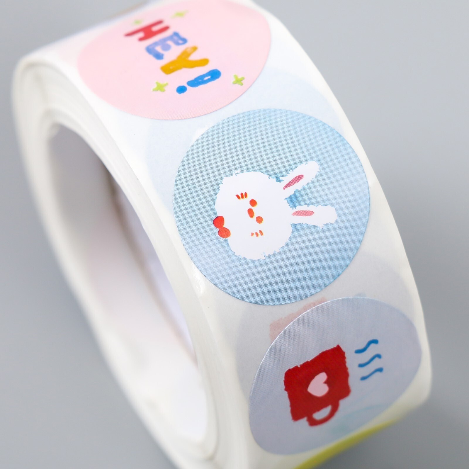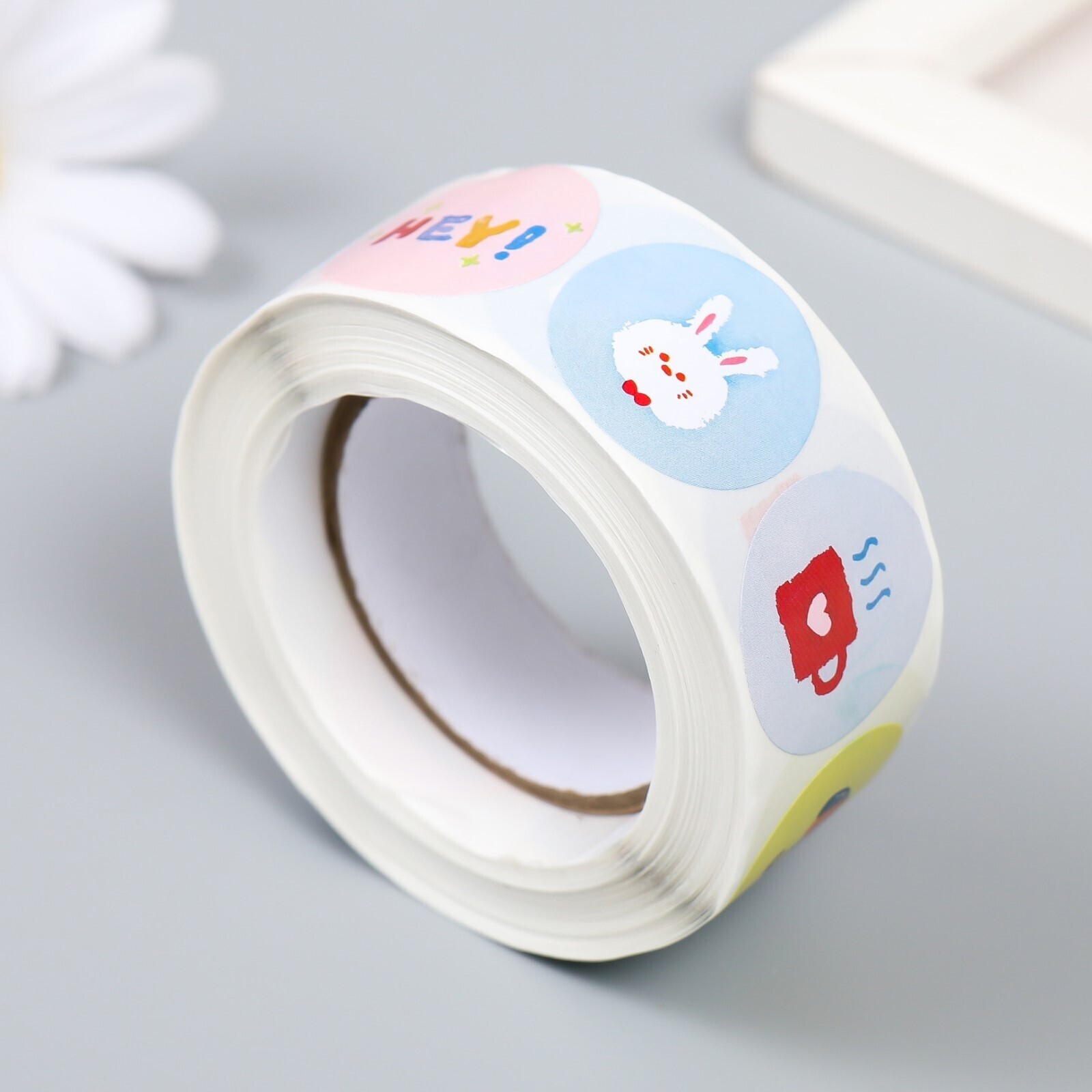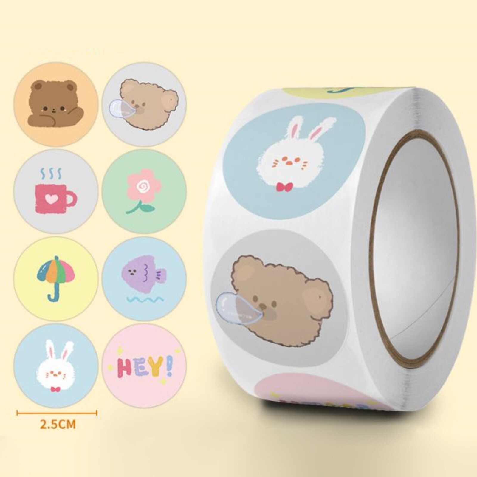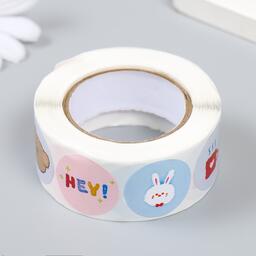 Наклейка бумага "Милые зверята" d=2,5 см 500 шт в рулоне 3х6,5х6,5 см