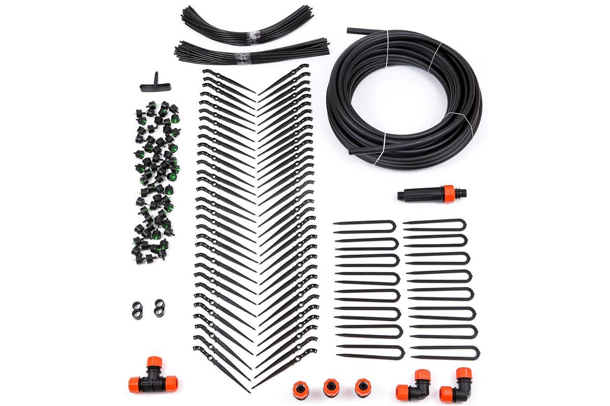 Комплектация: шланг магистральный - 18 м, микротрубка - 60 шт.,цанговый тройник 1/2-1 шт., цанговый зажим 1/2-3 шт.,цанговый уголок 1/2-2 шт.,компенсированная капельница - 61 шт.,стрелка с зажимом - 60 шт.,фильтр тонкой очистки - 1 шт., зажим для магистрального шланга -2 шт., прижим для магистрального шланга- 16 шт.,шило для магистрального шланга