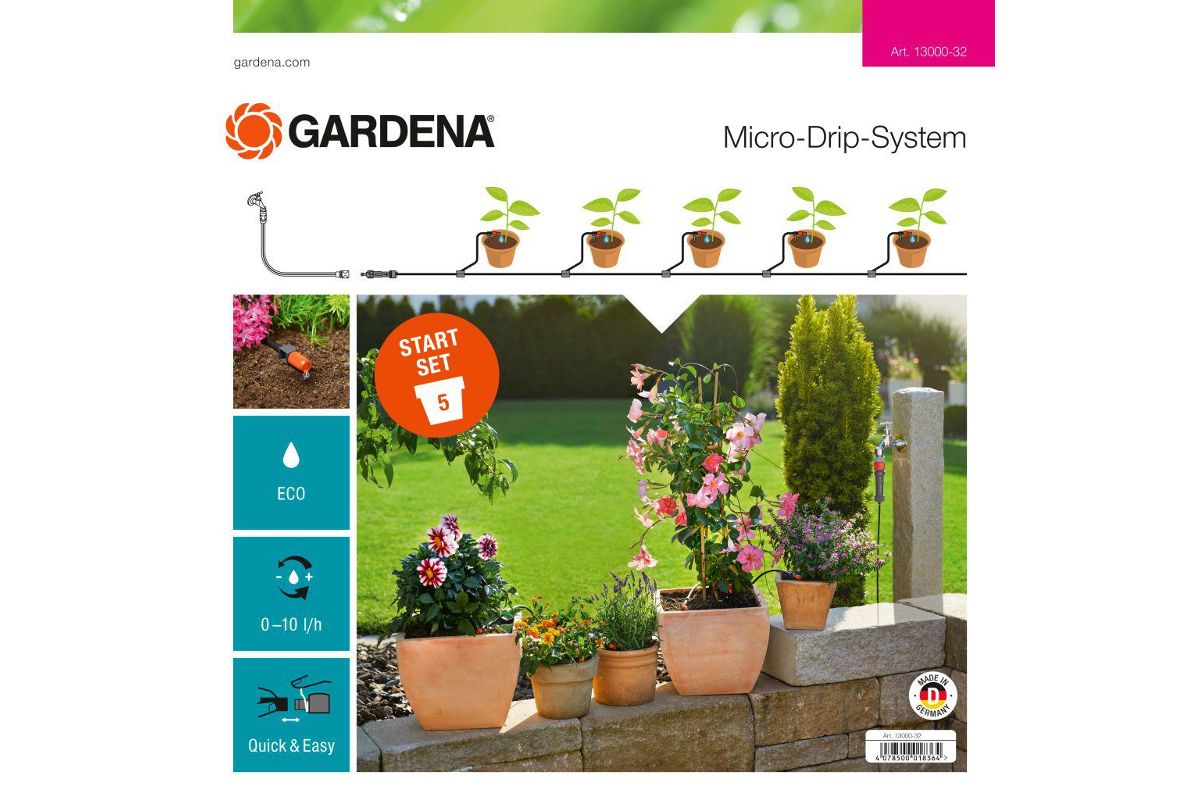 Комплект для террас базовый GARDENA 13000-32.000.00 предназначен для полива 5 горшечных растений.