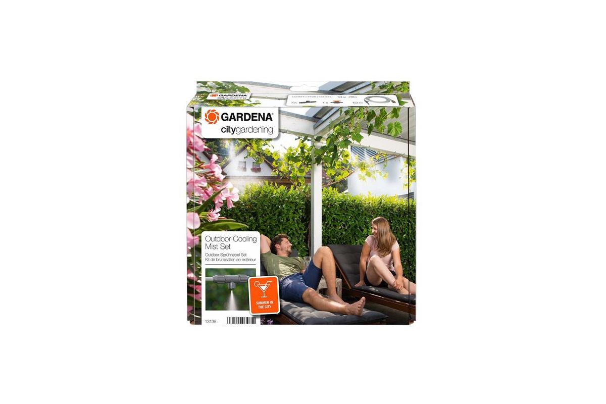 Комплект полива GARDENA 13135-20.000.00 устанавливается в зонах отдыха, например на балконе, терассе или под пляжным зонтом. Мелкое распыление позволяет опустить температуру на 6 градусов. Подсоединение осуществляется при помощи базовой системы полива Gardena.