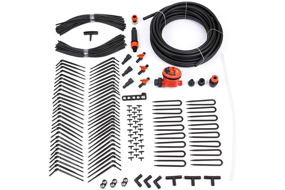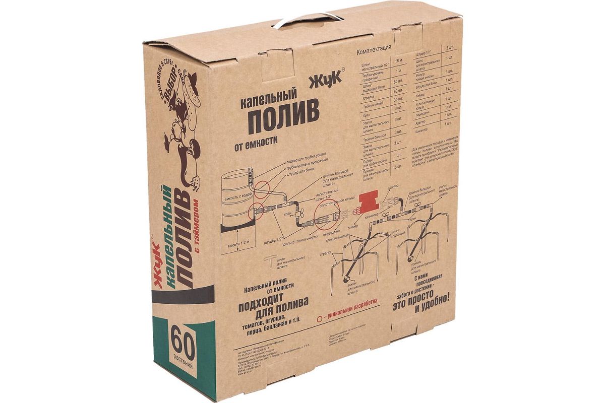 Комплект для капельного полива в теплице Жук на 60 растений (2 грядки по 6 метров) в коробке с таймером.