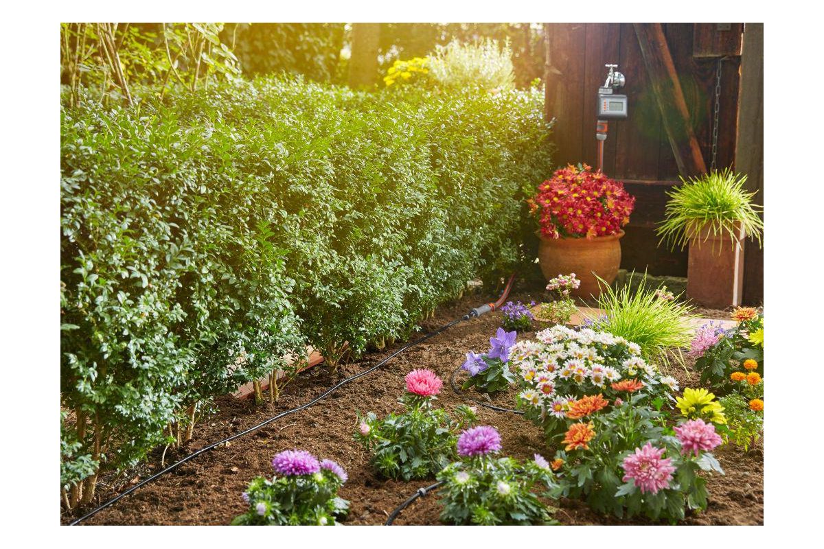Комплект базовый для наземной прокладки Gardena предназначен для полива небольших участков с цветами, овощами и фруктами, а также для полива посаженных в ряд растений. Расстояние между отверстиями составляет 30 см. Каждая капельница обеспечивает бережный полив с расходом воды 1,6 л/ч. Благодаря использованию инновационной лабиринтной технологии, капельницы являются самоочищающимися. Благодаря небольшому диаметру 4,6 мм (3/16'') шланг характеризуется особой многофункциональностью и простотой монтажа. При условии установки мастер-блока по центру длина шланга может быть увеличена до 30 м с помощью комплекта для удлинения (артикул производителя 1362-20 ).