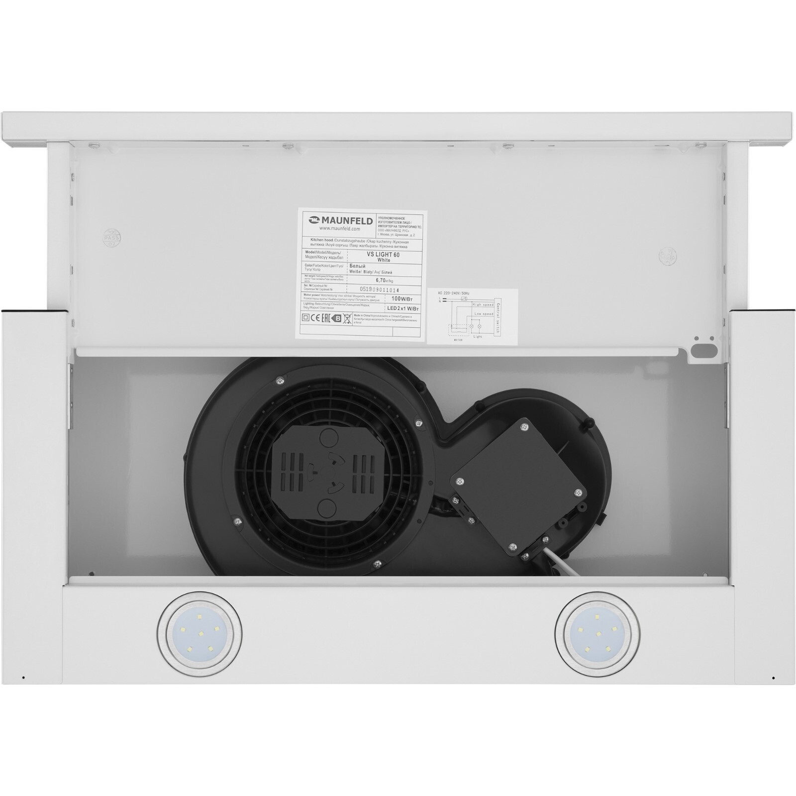 Вытяжка MAUNFELD VS Light 60, телескопическая, 520 м3/ч, 2 скорости, 60 см, белая